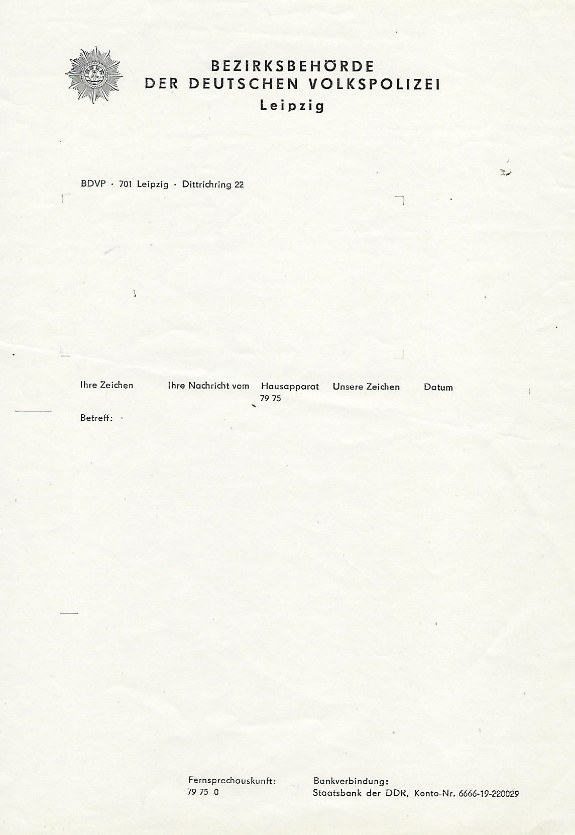 Briefumschlag der Bezirksbehörde der Deutschen Volkspolizei (BdVP) Halle Din A6 |