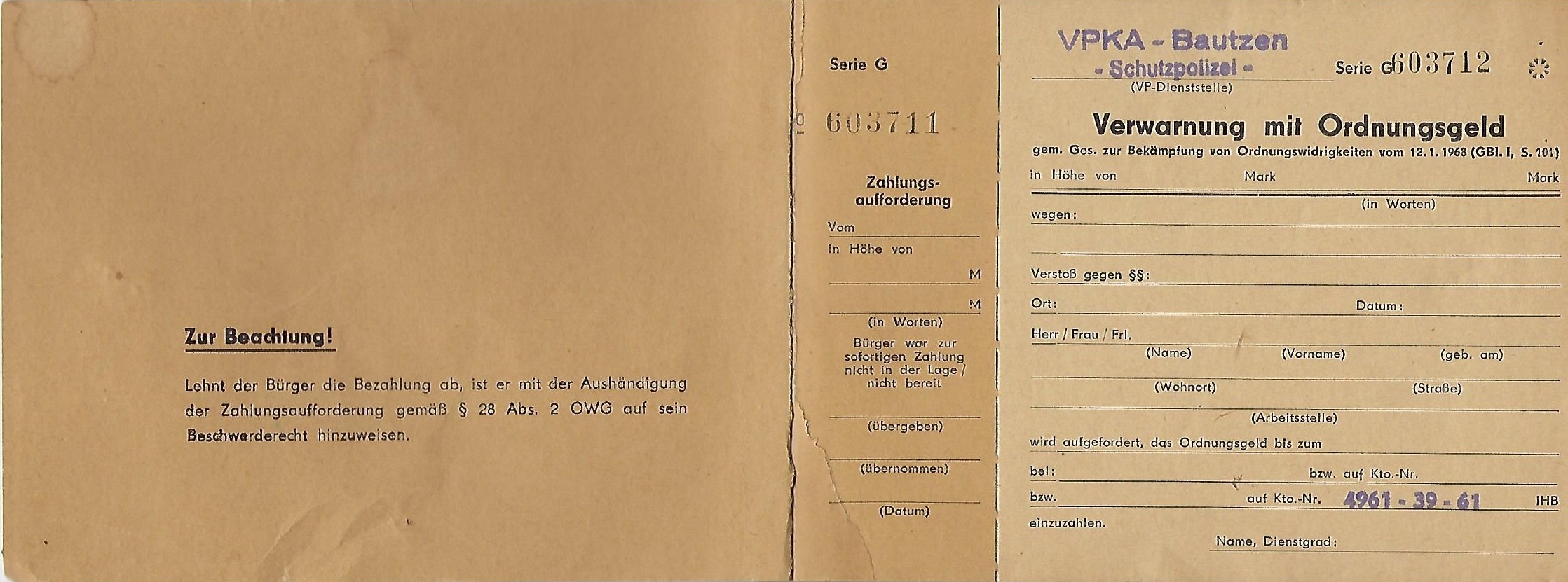 Anweisung Nr. 19/84 - über die Durchführung eines Verbindlichen Mindestumtausches von Zahlungsmitteln (in Kopie) |