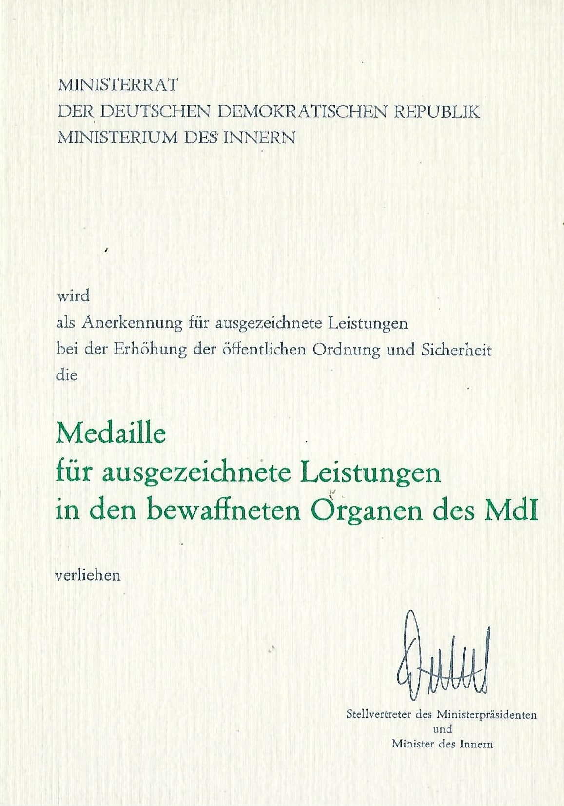 Urkunde für das Qualifikationsabzeichen des MdI |