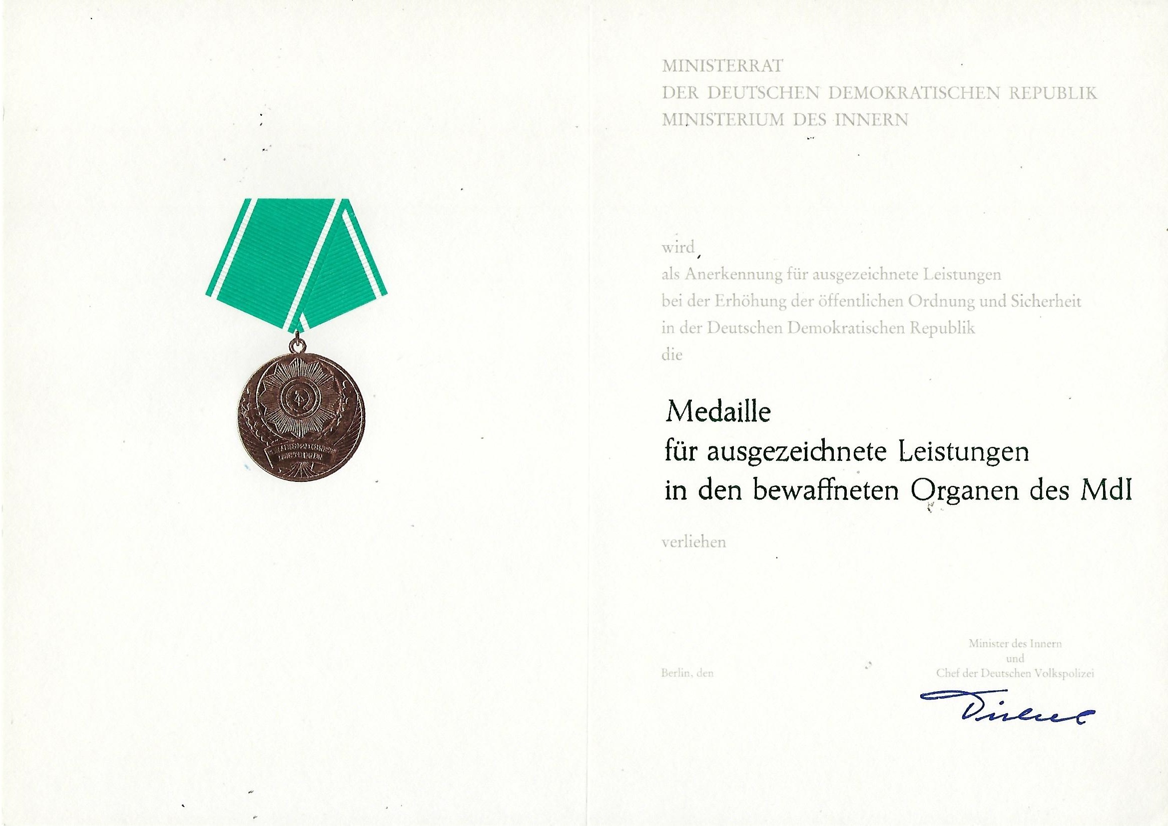 Anschreiben vom Minister und Chef der Deutschen Volkspolizei |