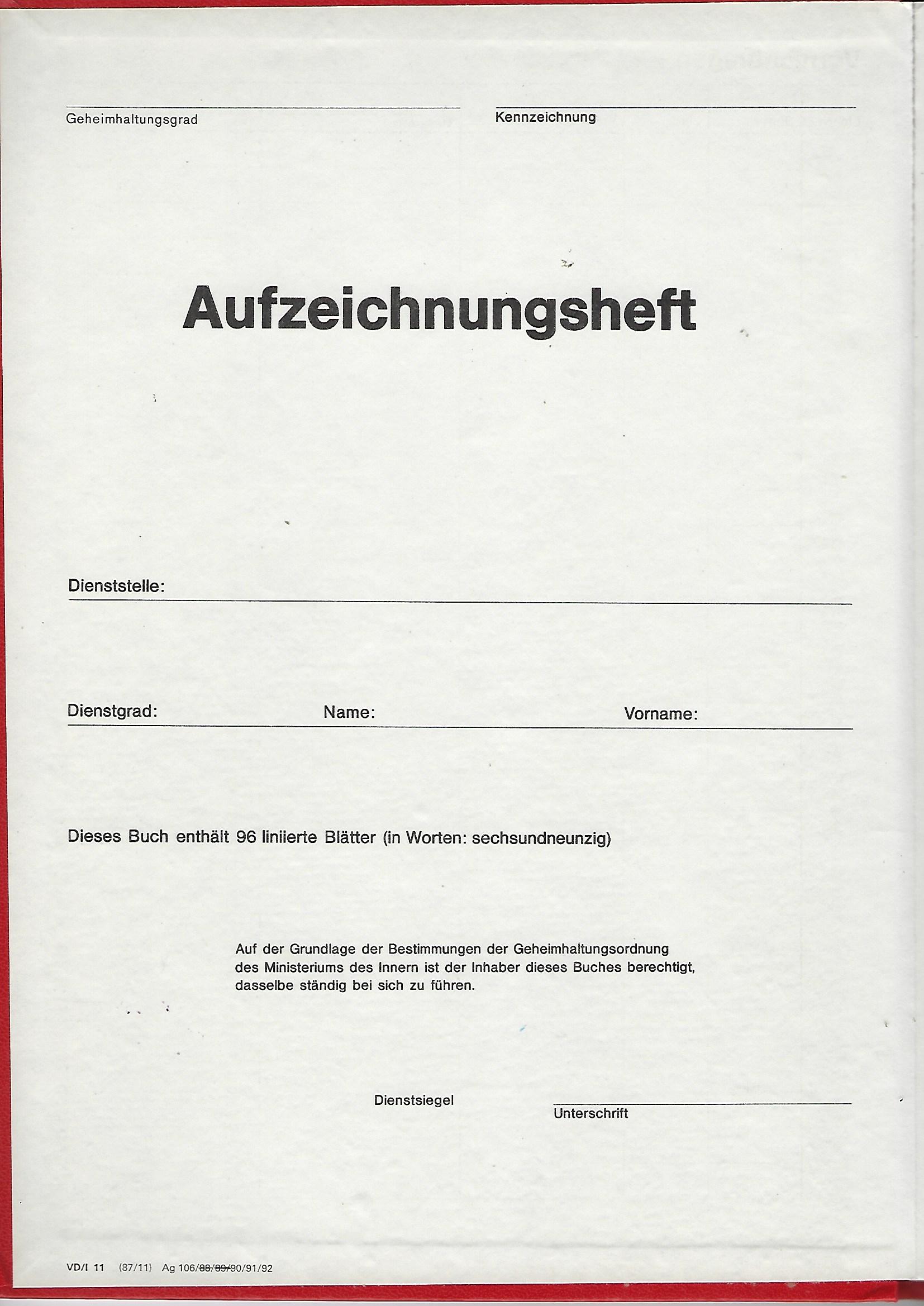 Dienstvorschrift Nr. 08/82 Teil D- Aufgaben der Deutschen Volkspolizei zur Sicherung der Grenzgebiete und Seegewässer - Grenzvorschrift (in Kopie) |