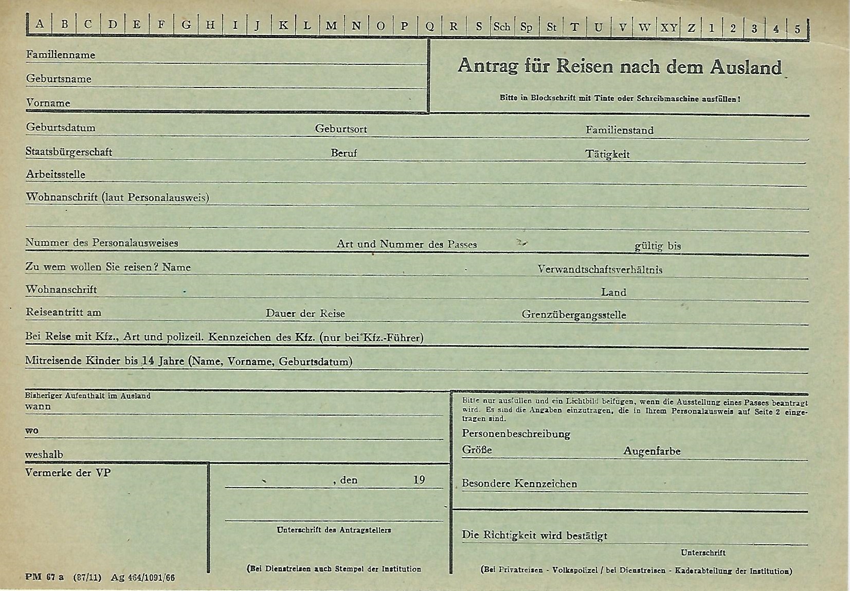 Katalog PM 190/75 über Dokumente die Ausländern zum Aufenthalt in der DDR berechtigen - Bekämpfung von Gewaltakten (in Kopie) |