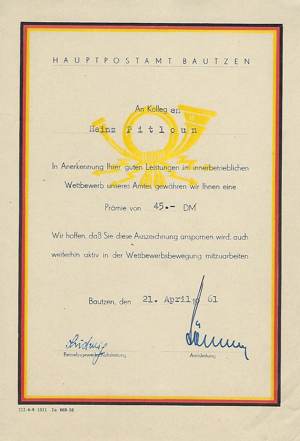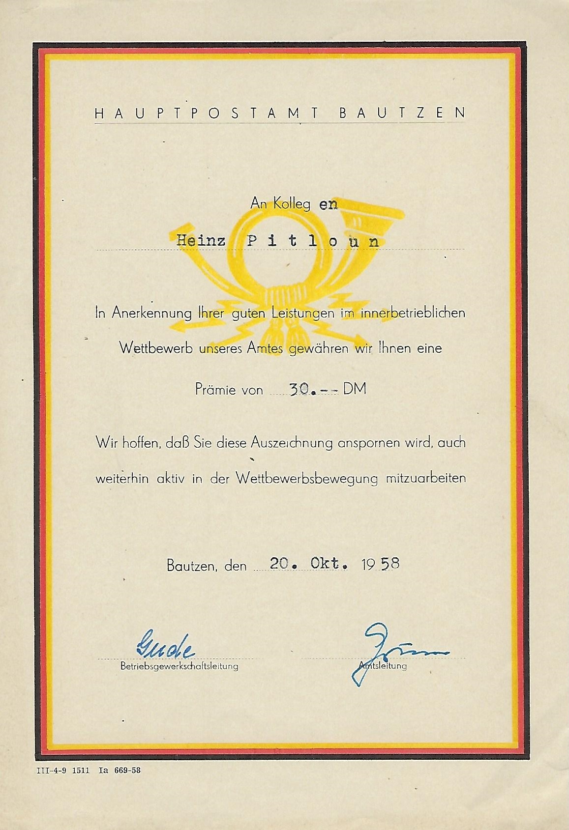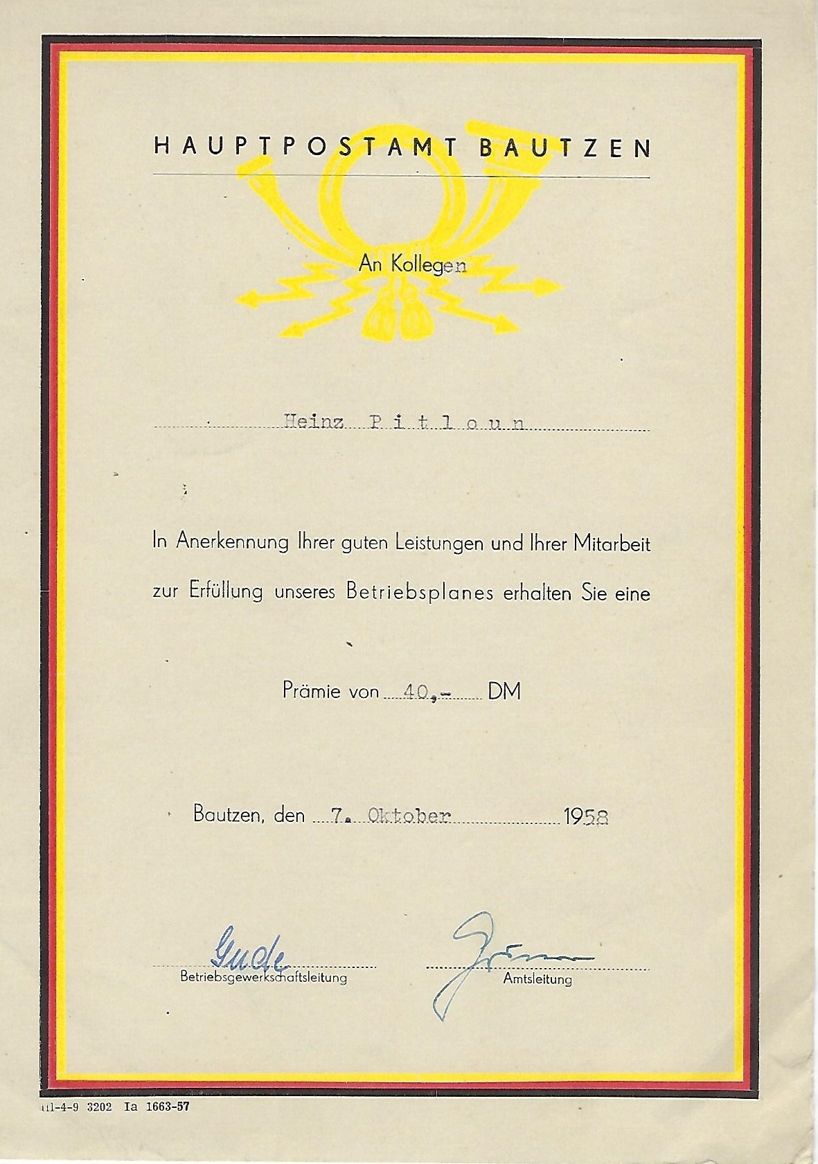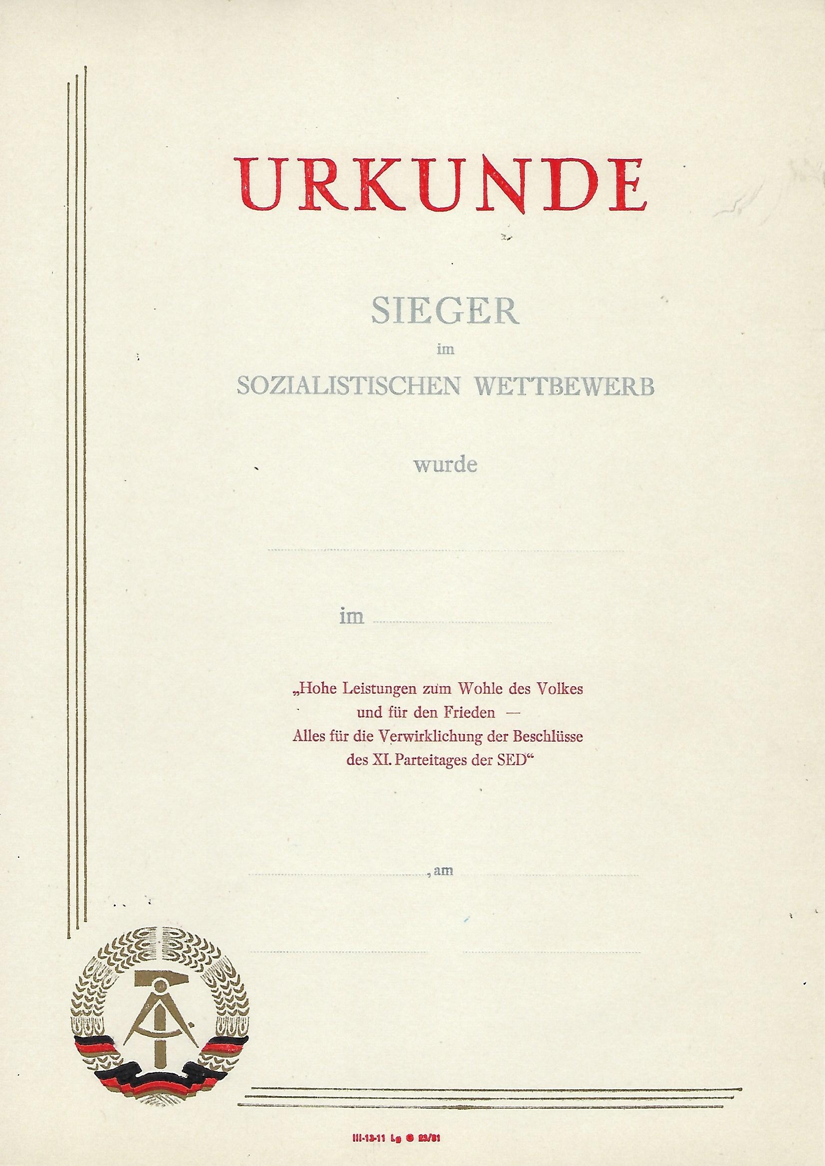 Urkunde Sieger im Sozialistischen Wettbewerb ... |