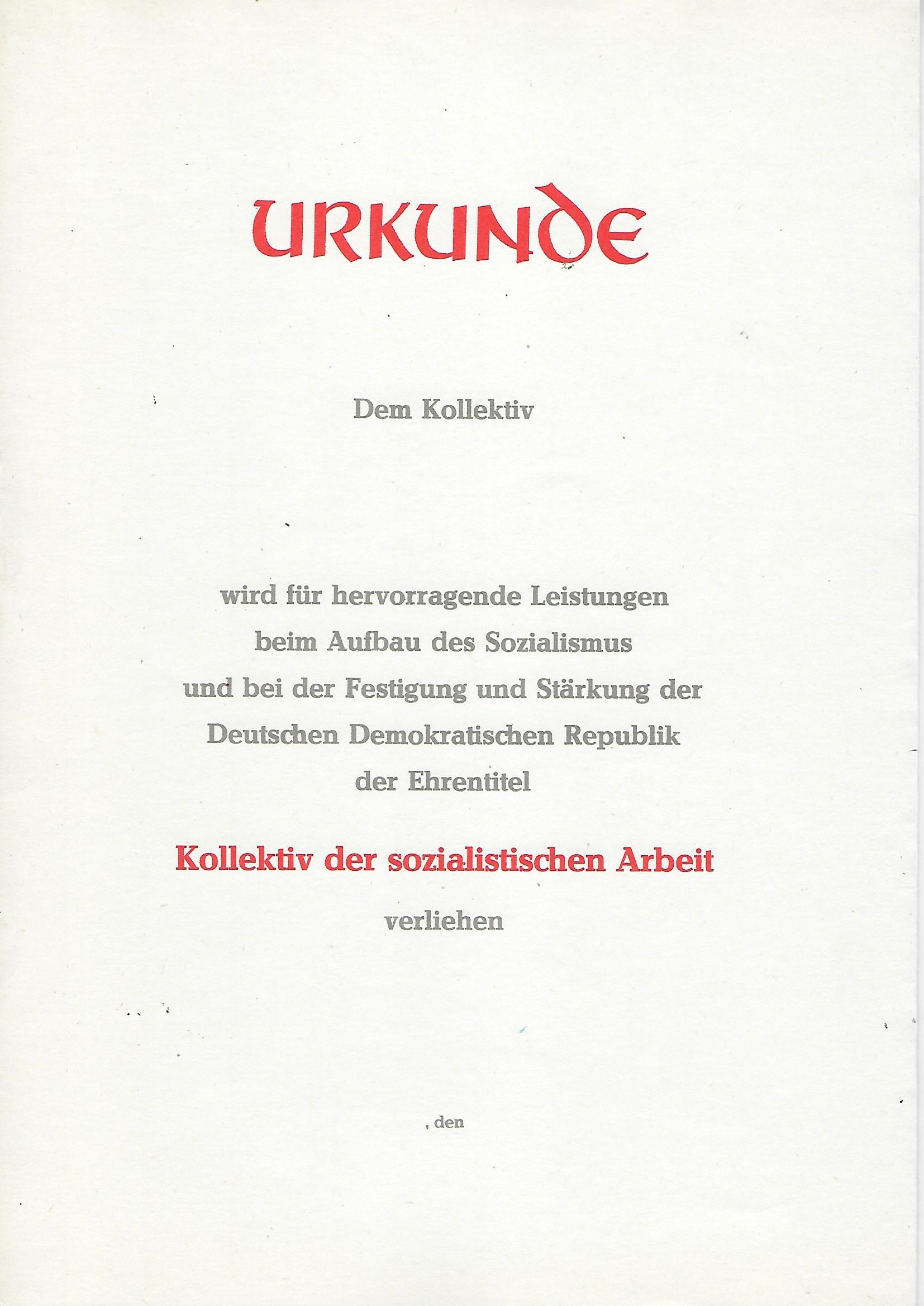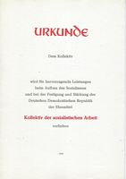 Urkunde Kollektiv der sozialistischen Arbeit |
