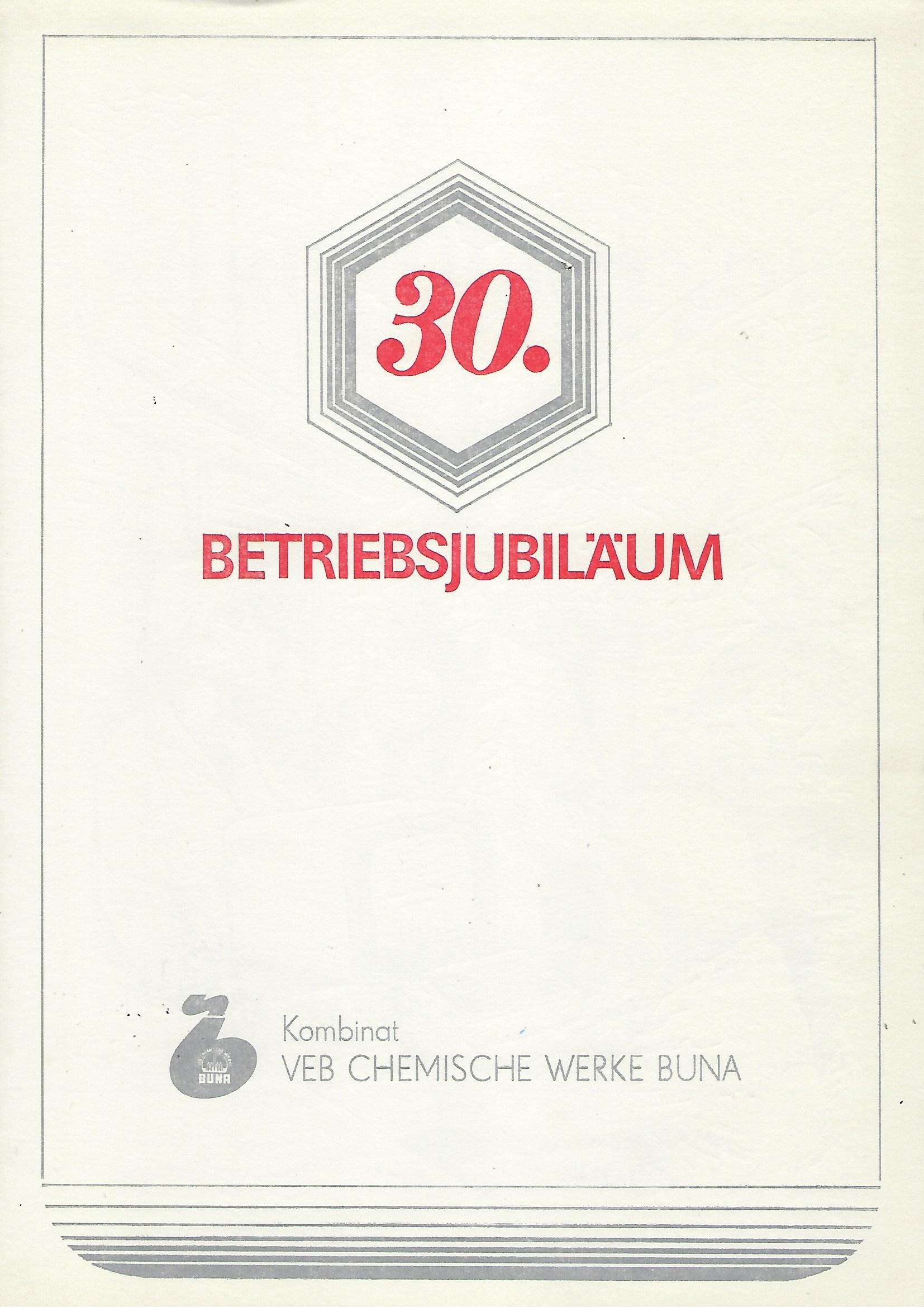 30. Betriebsjubiläum VEB Chemische Werke Buna |