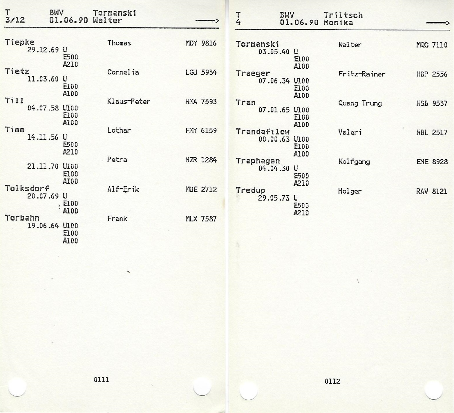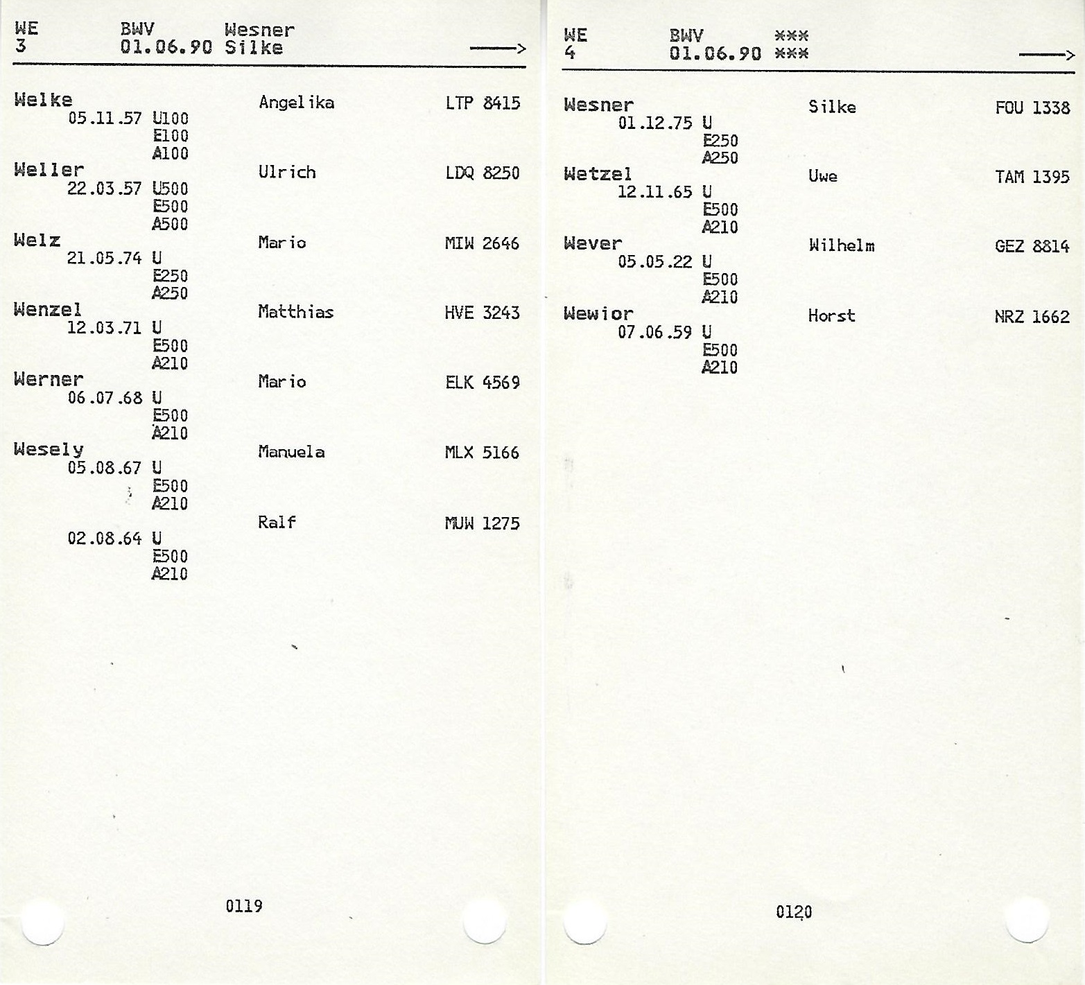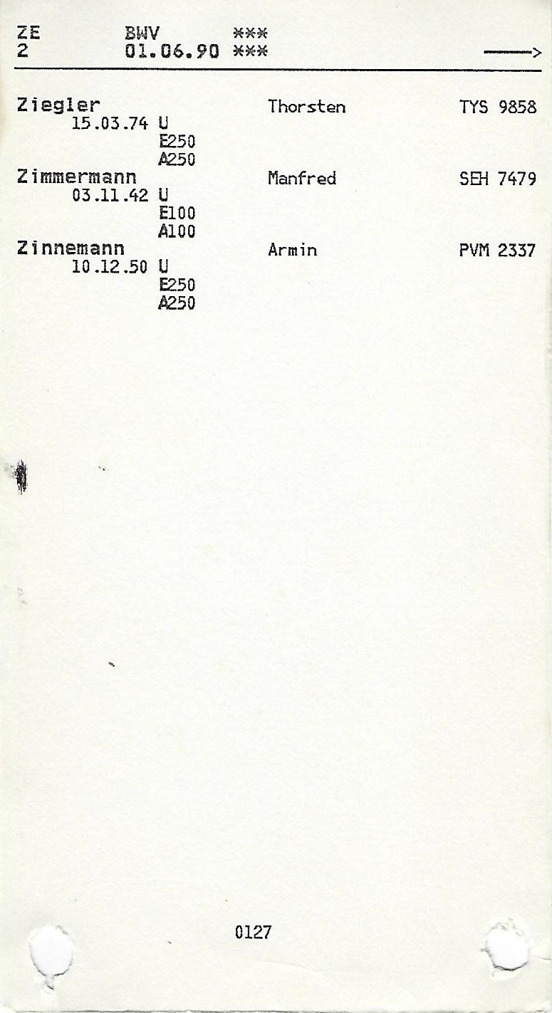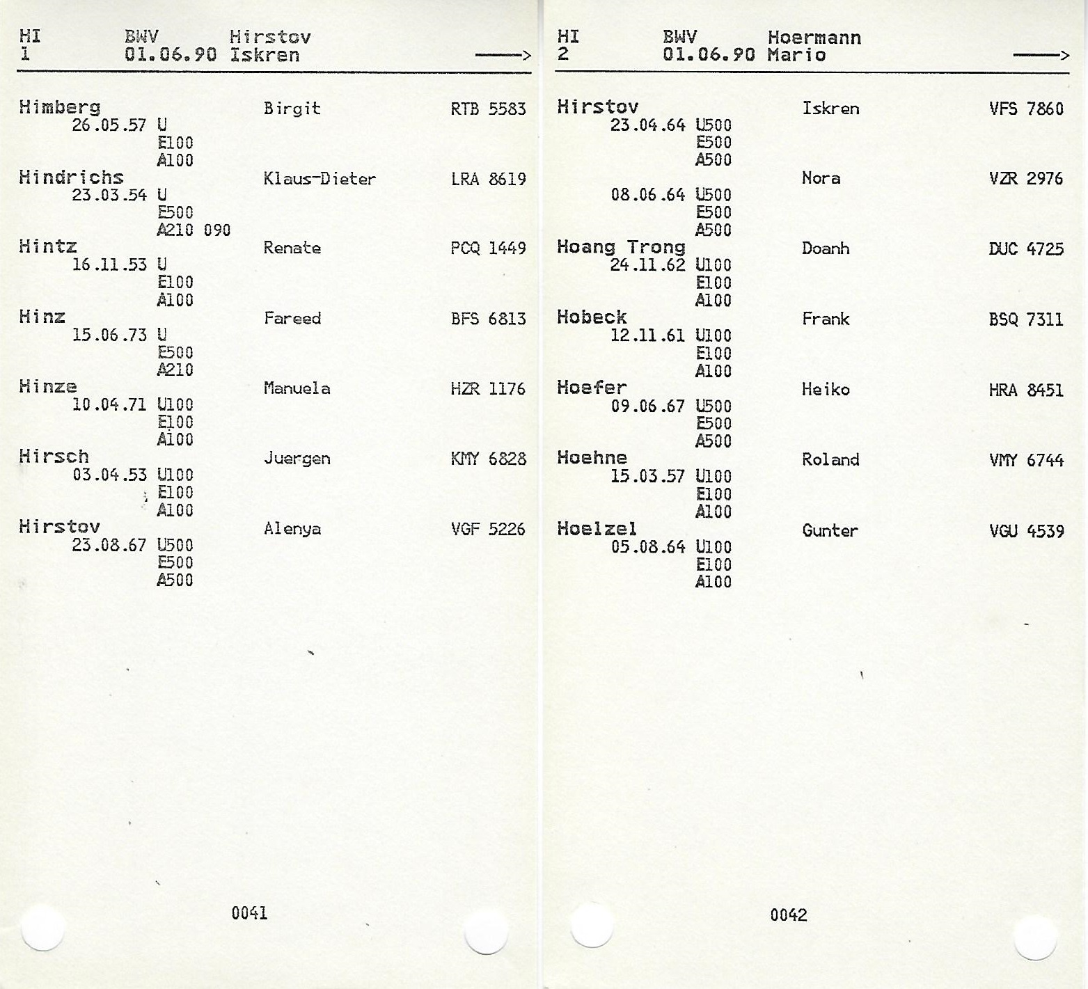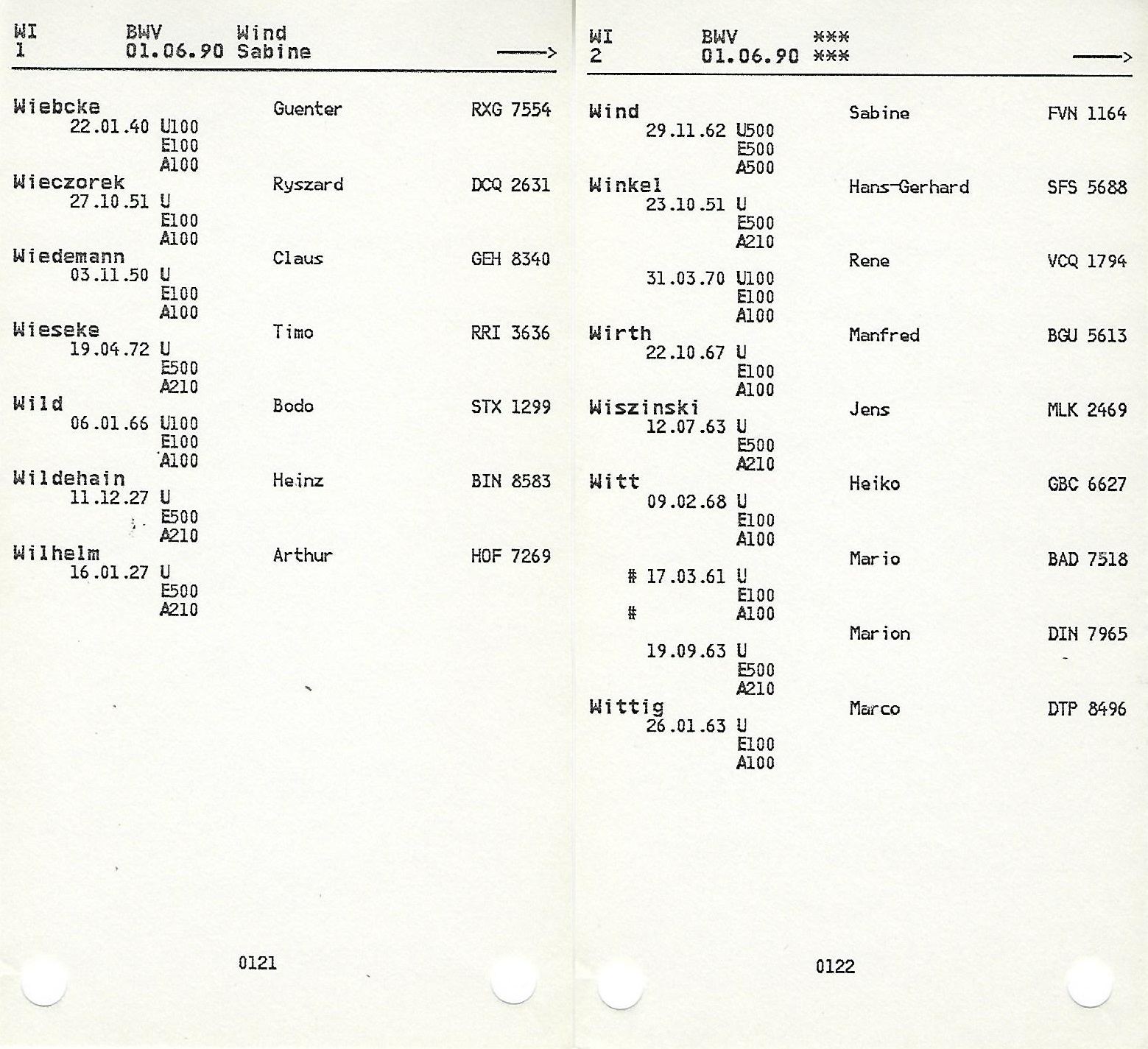 BWV - Fahndungsblock Wechselverkehr von 01.06.1990 (Personenfahndungsmittel der Hauptabteilung VI; 1989 - )