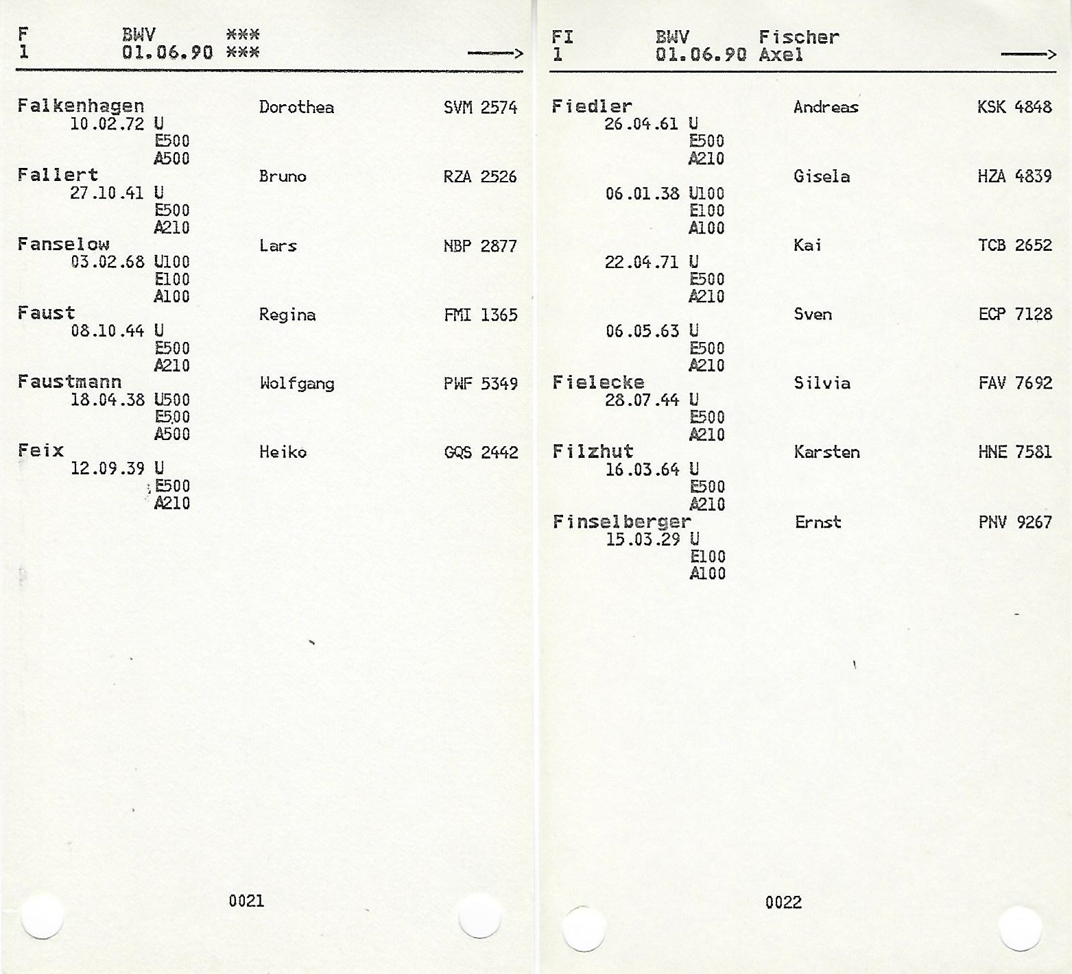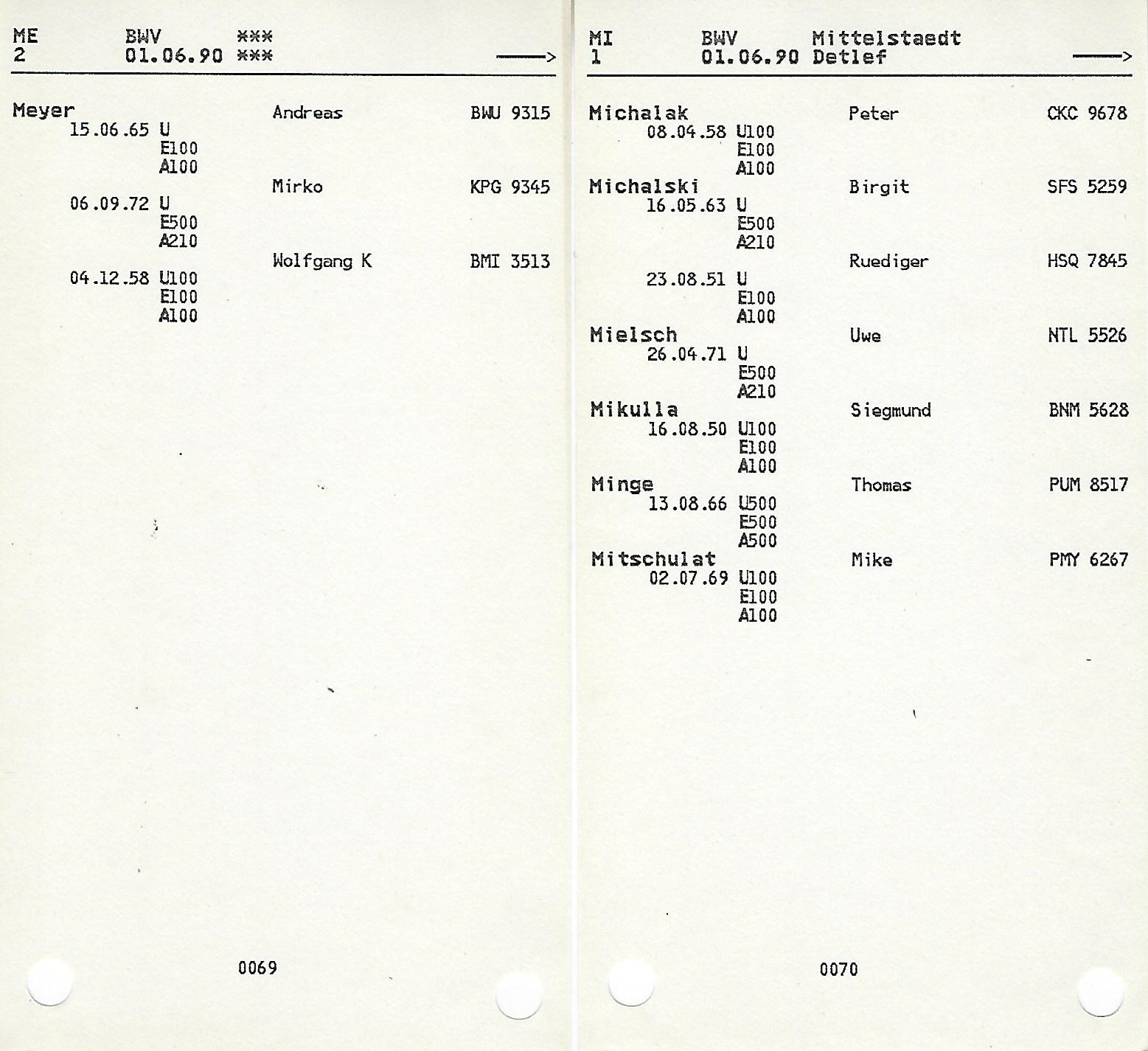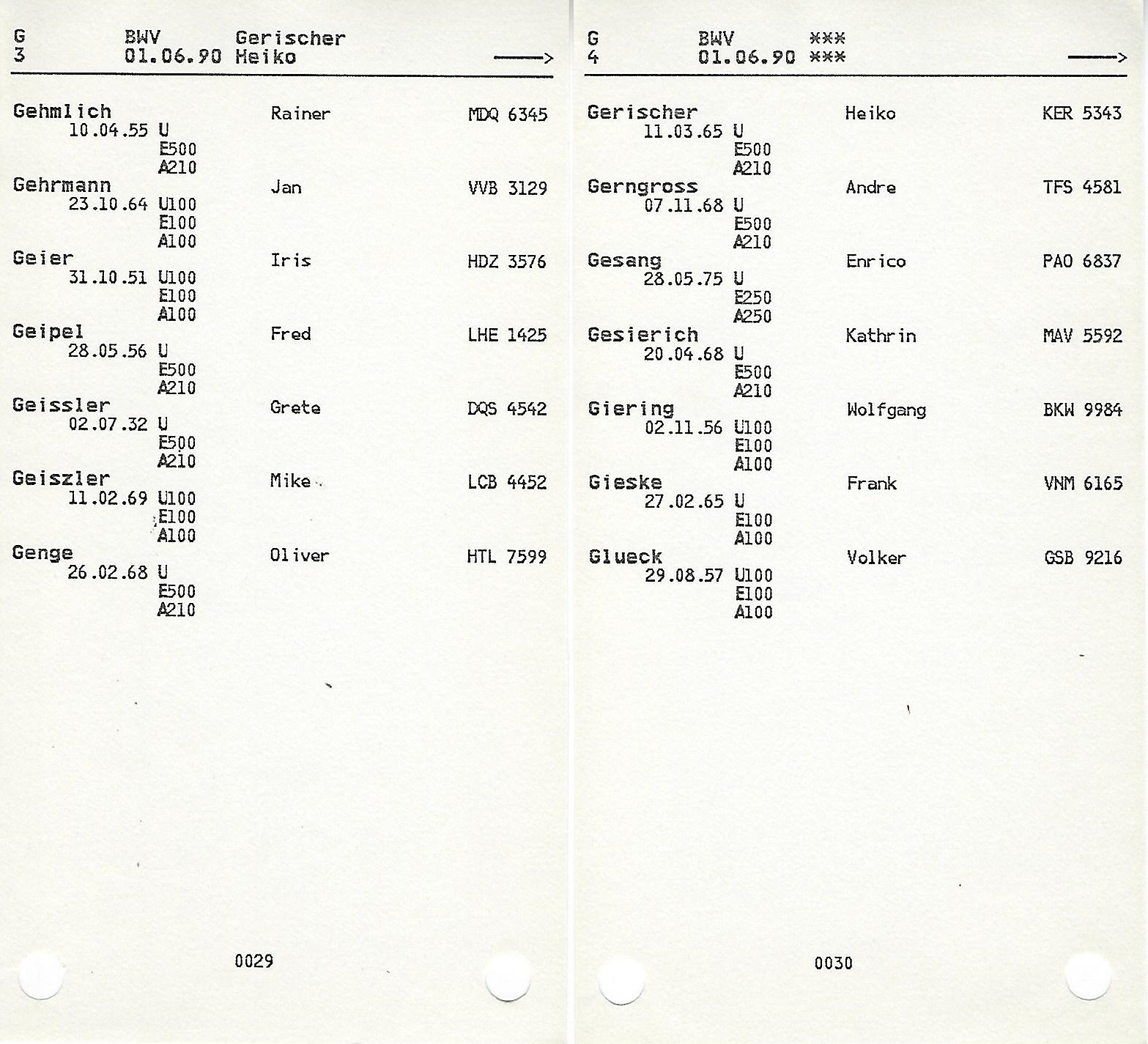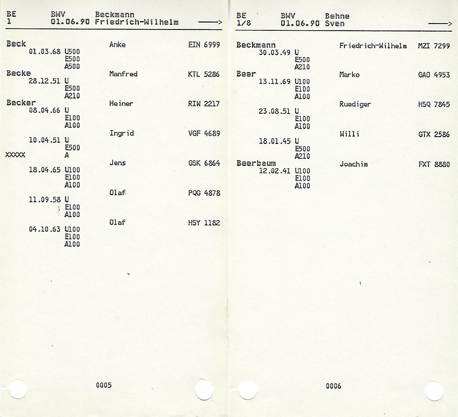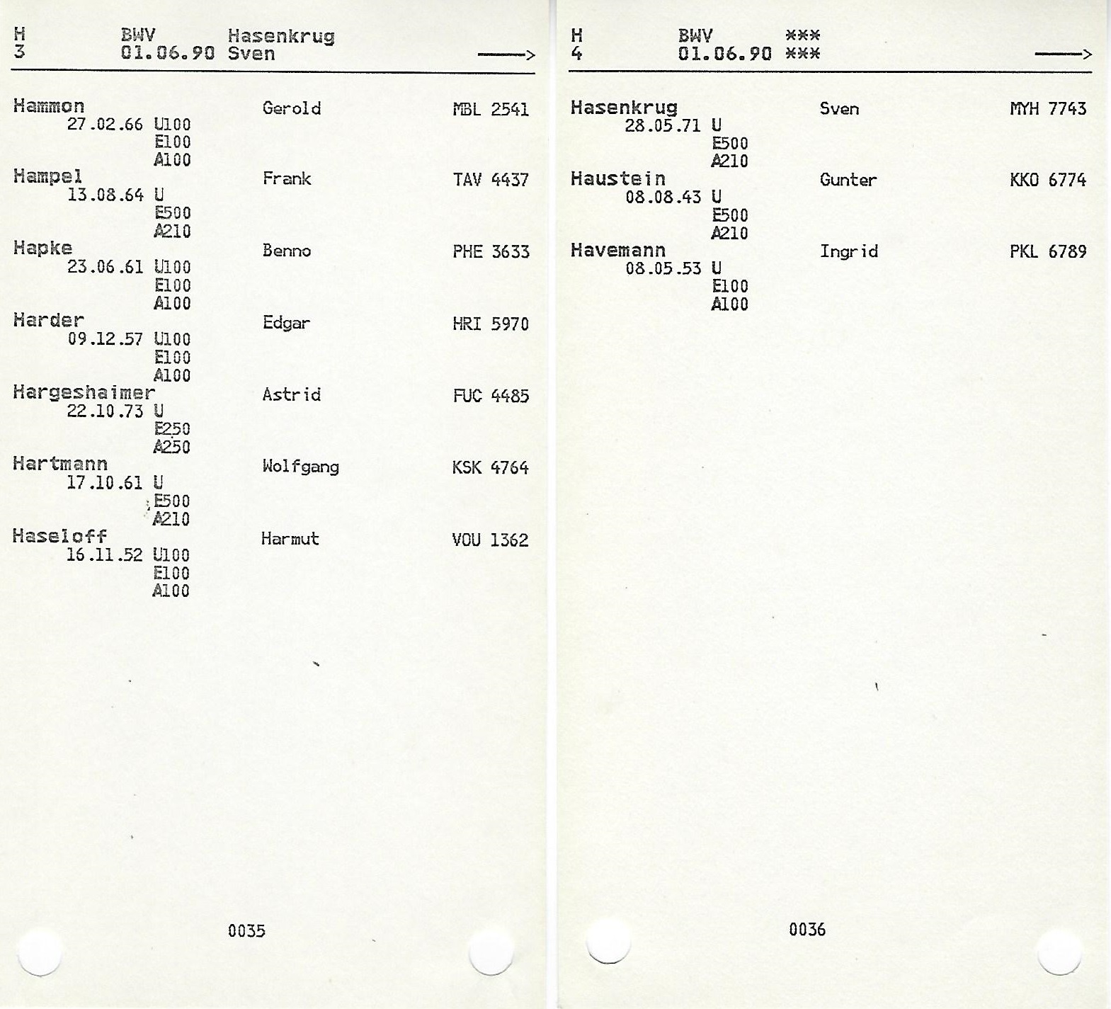 BWV - Fahndungsblock Wechselverkehr von 01.06.1990 (Personenfahndungsmittel der Hauptabteilung VI; 1989 - )