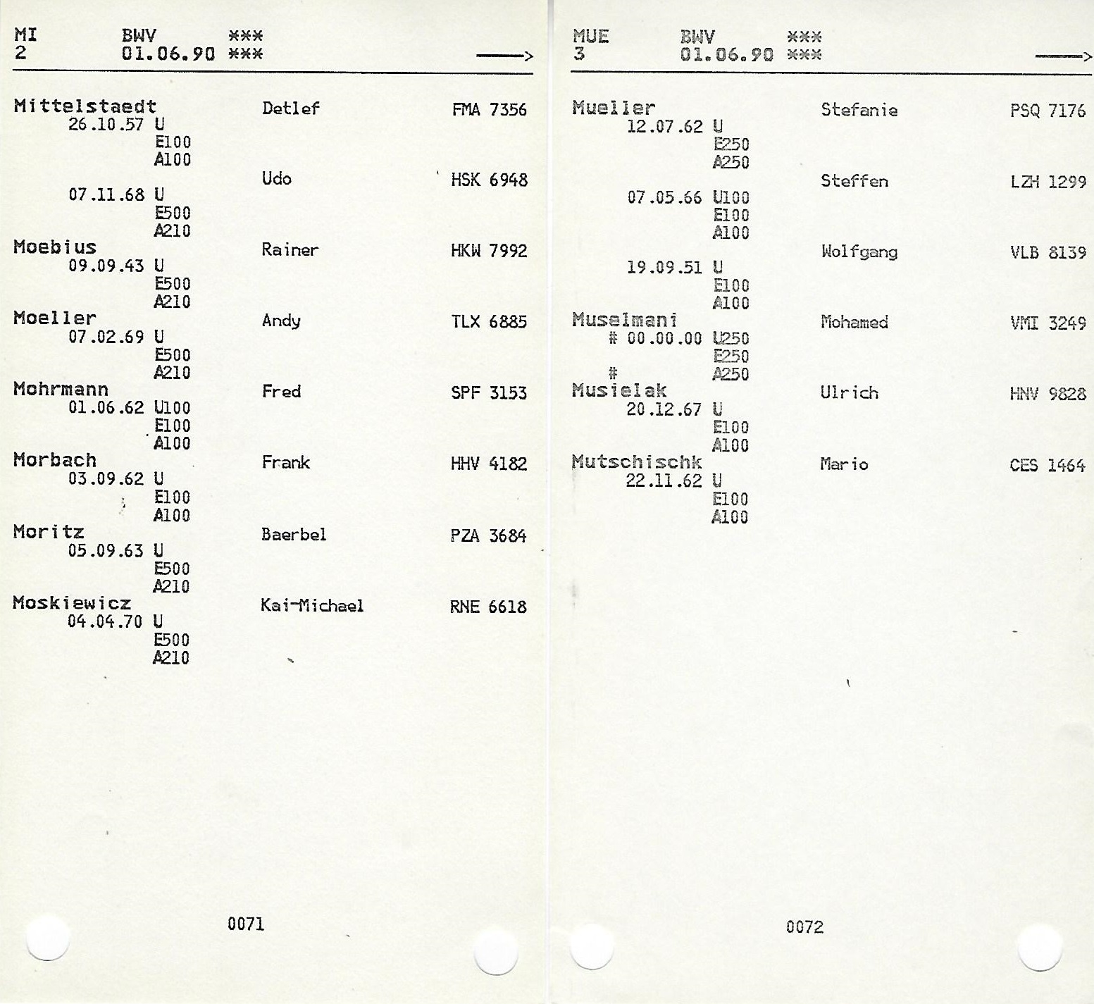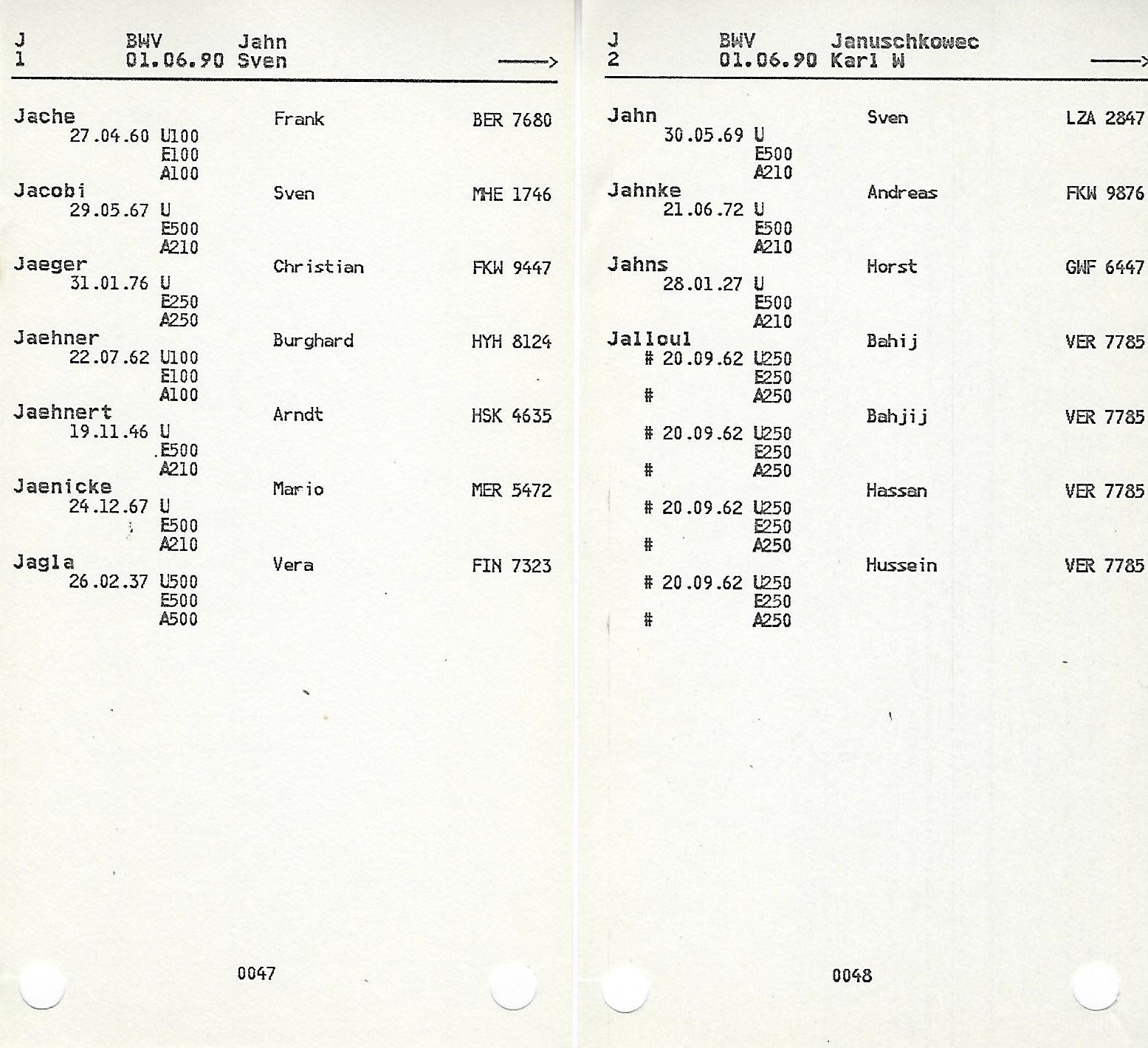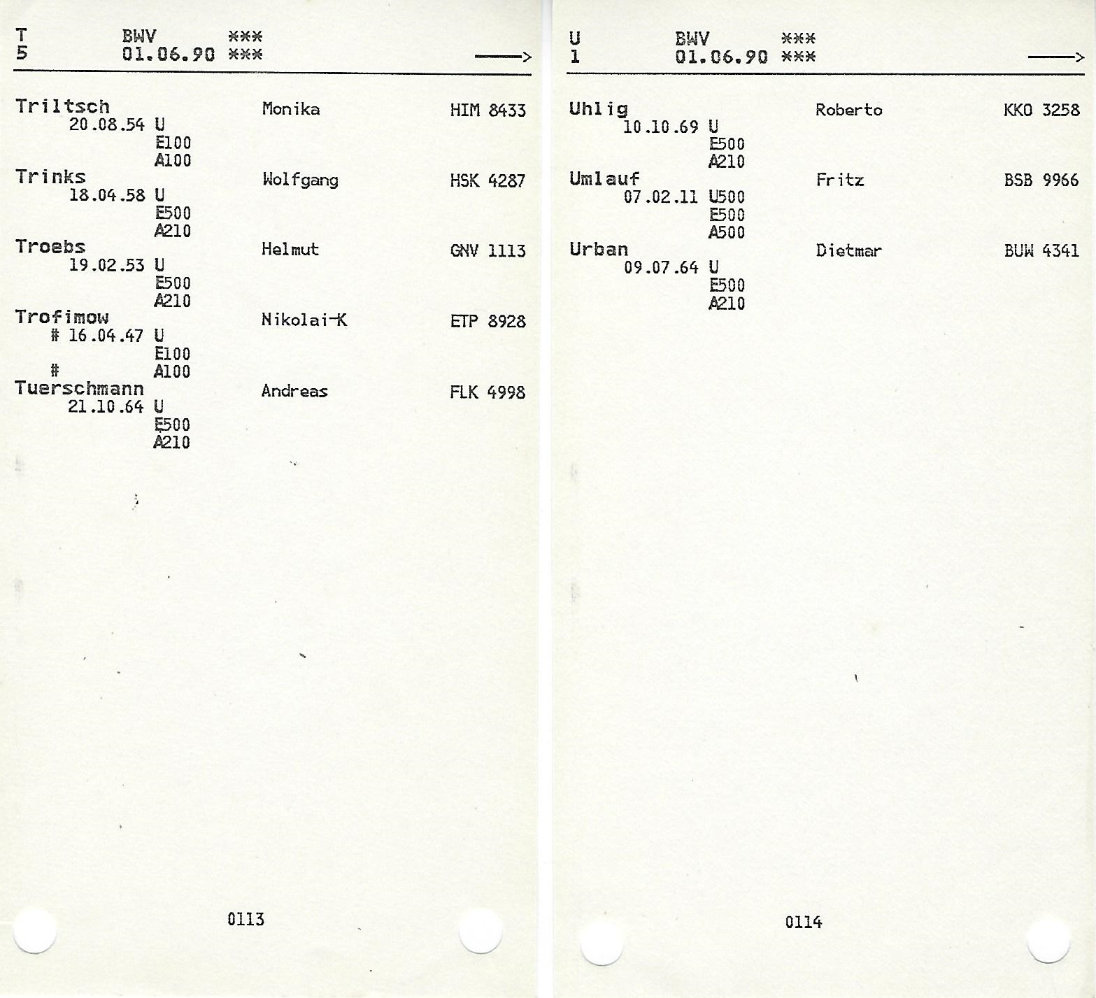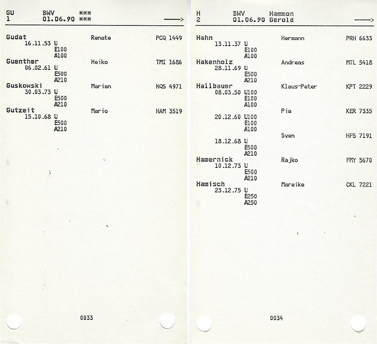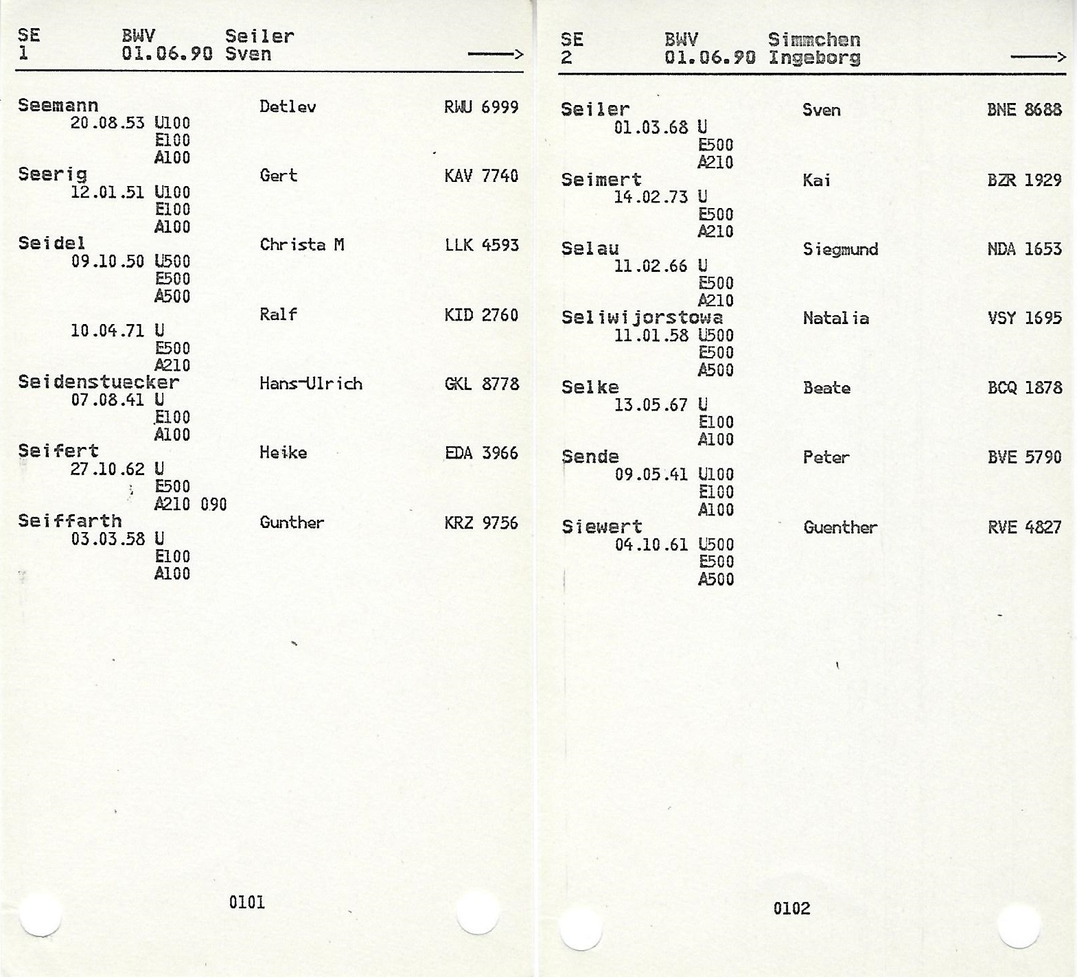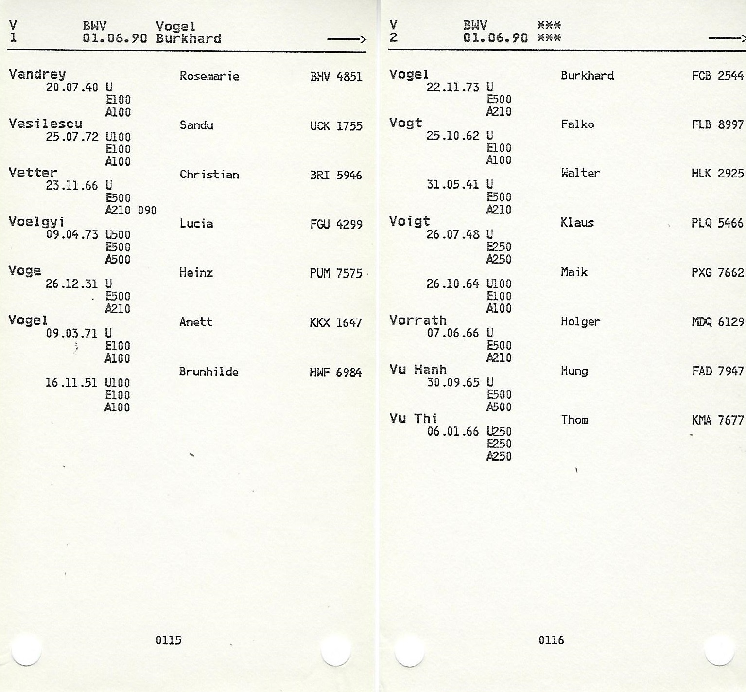 BWV - Fahndungsblock Wechselverkehr von 01.06.1990 (Personenfahndungsmittel der Hauptabteilung VI; 1989 - )