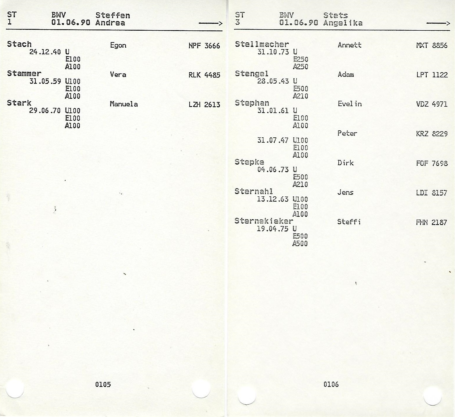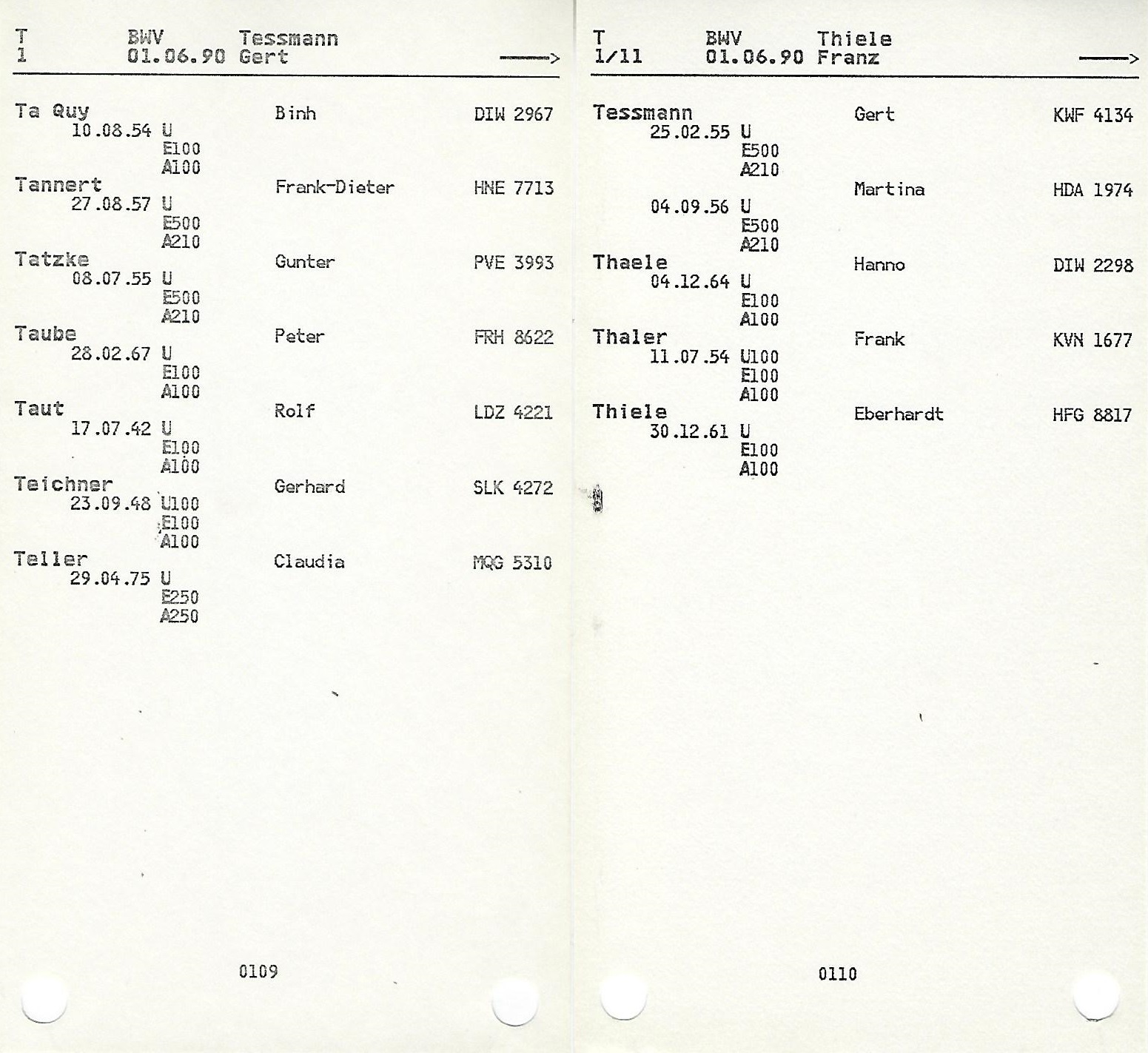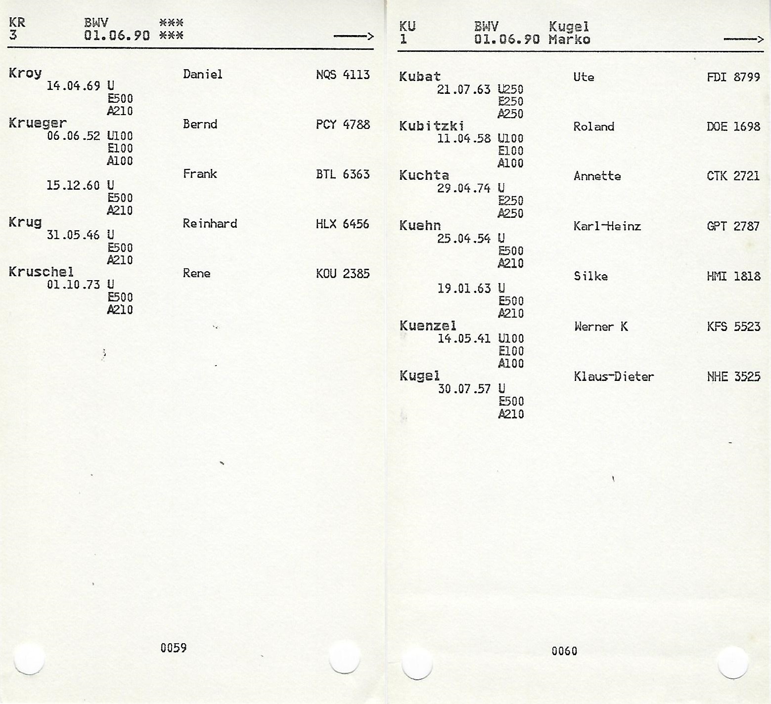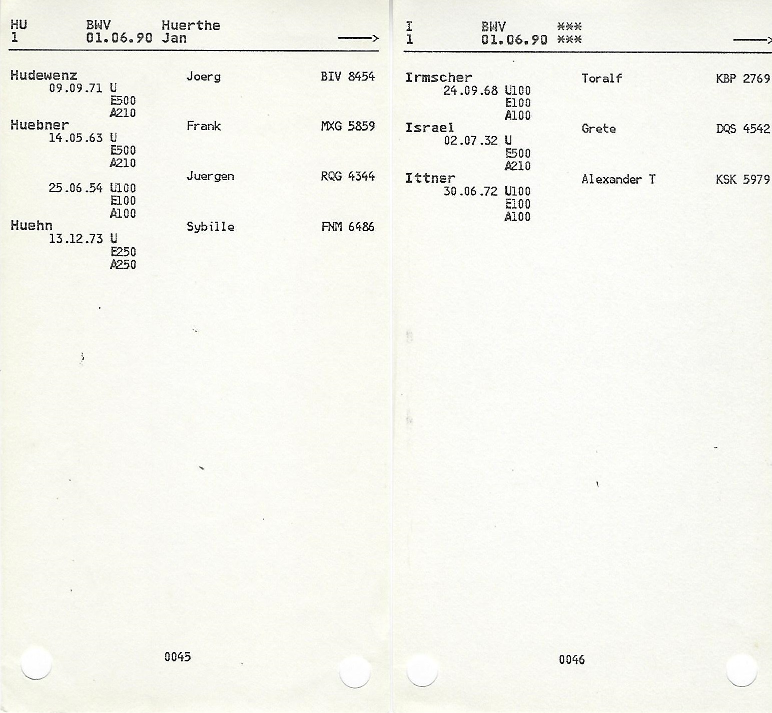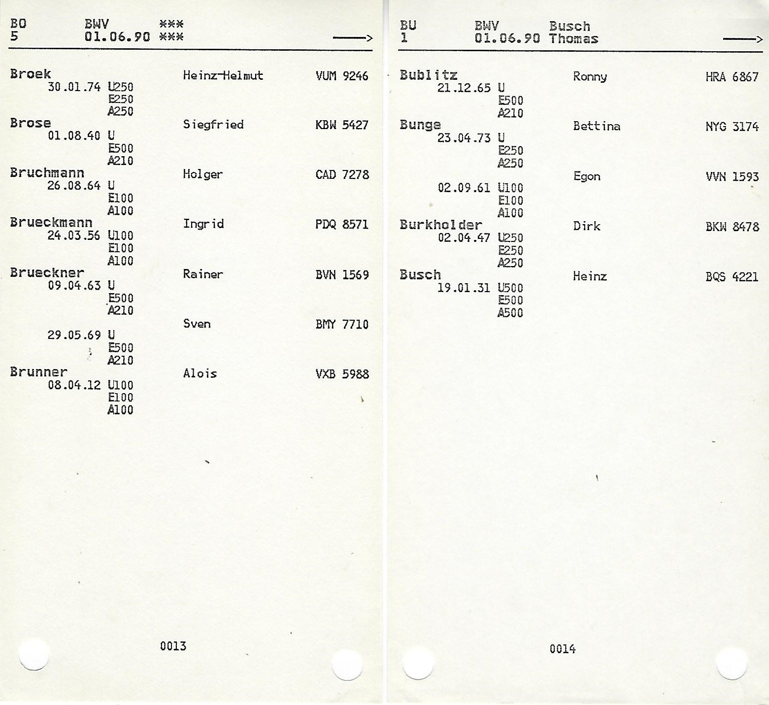 BWV - Fahndungsblock Wechselverkehr von 01.06.1990 (Personenfahndungsmittel der Hauptabteilung VI; 1989 - )