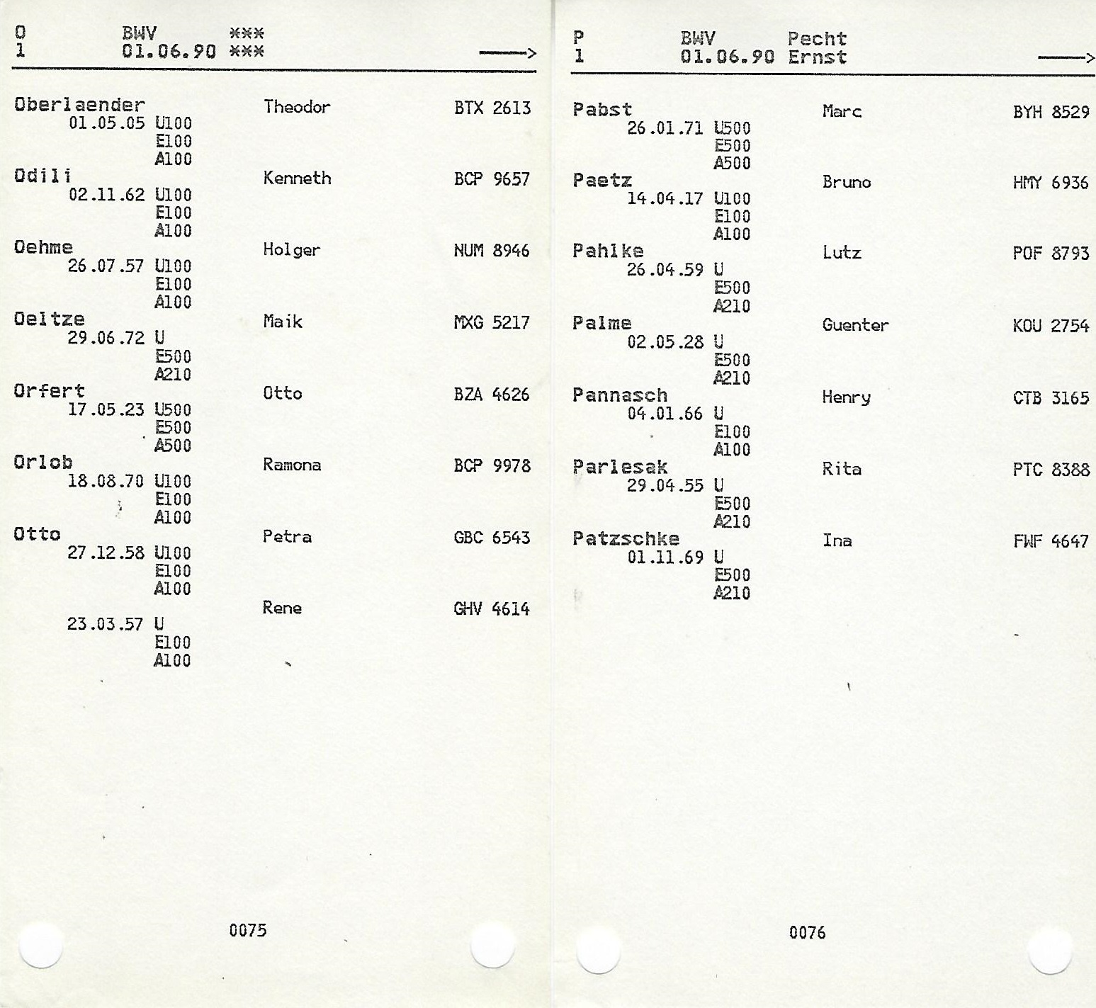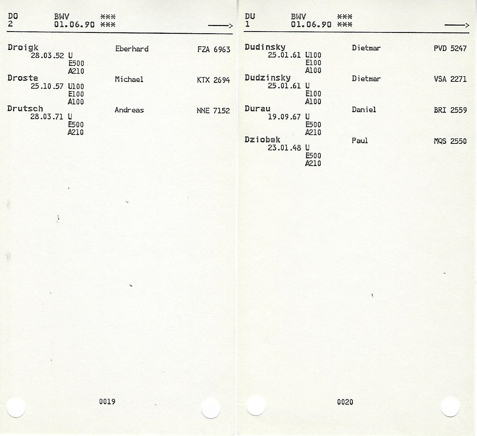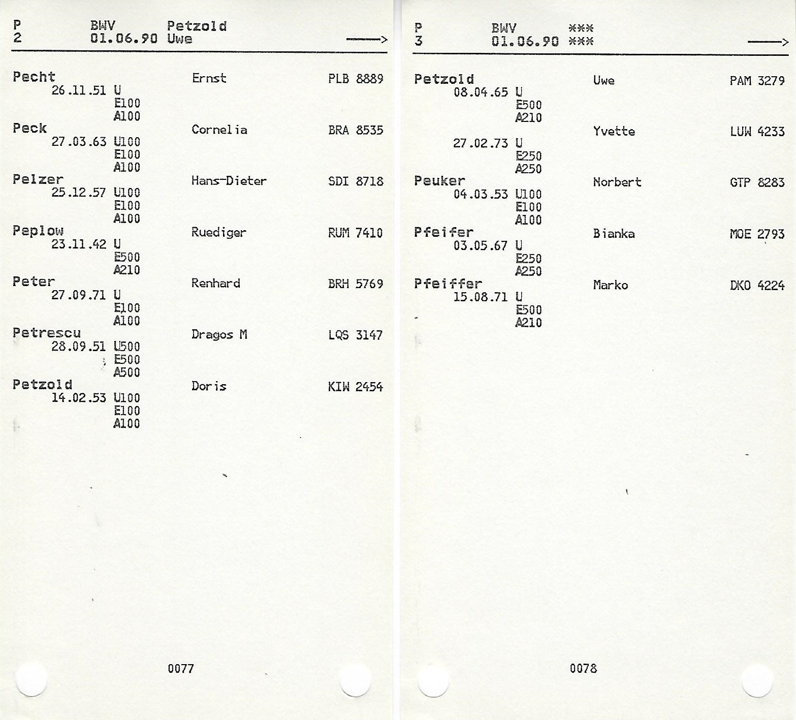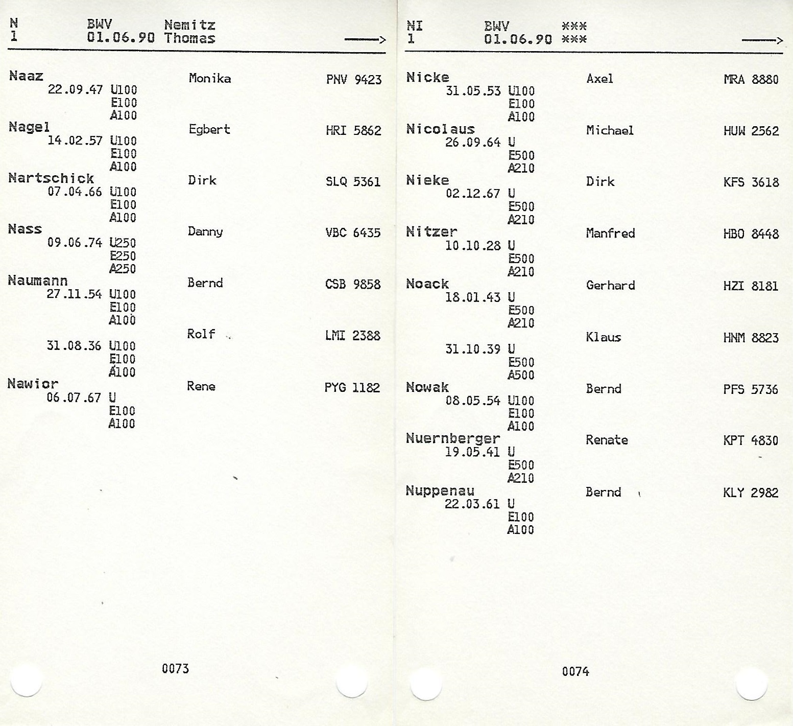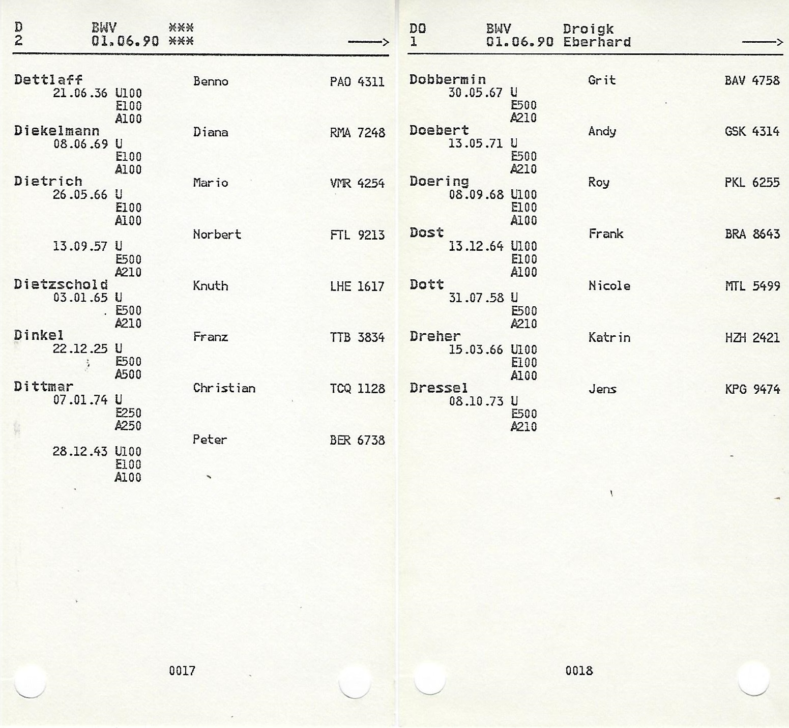 BWV - Fahndungsblock Wechselverkehr von 01.06.1990 (Personenfahndungsmittel der Hauptabteilung VI; 1989 - )
