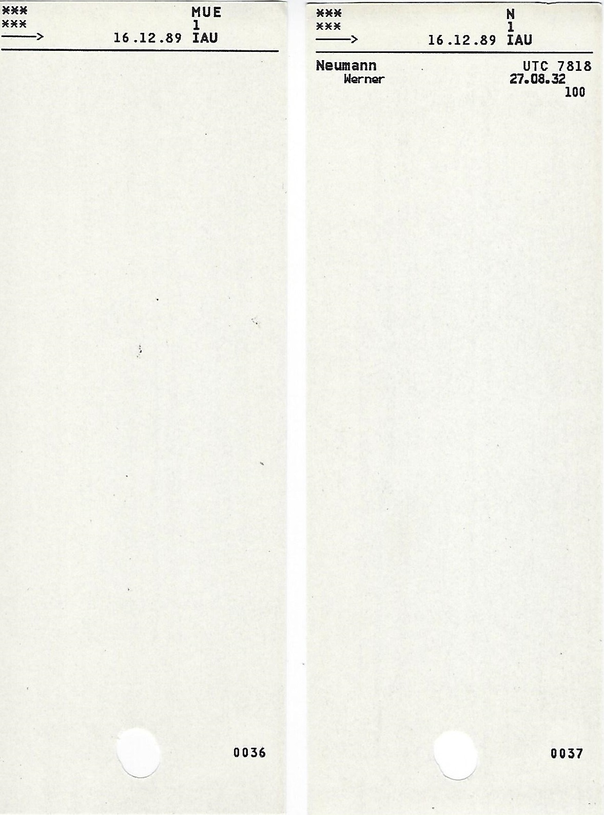 IAU - Identifizierungskartei zur Personenaus-reise gesamt vom 16.12.1989 ; Personenfahndungsmittel der Hauptabteilung VI; 1989)