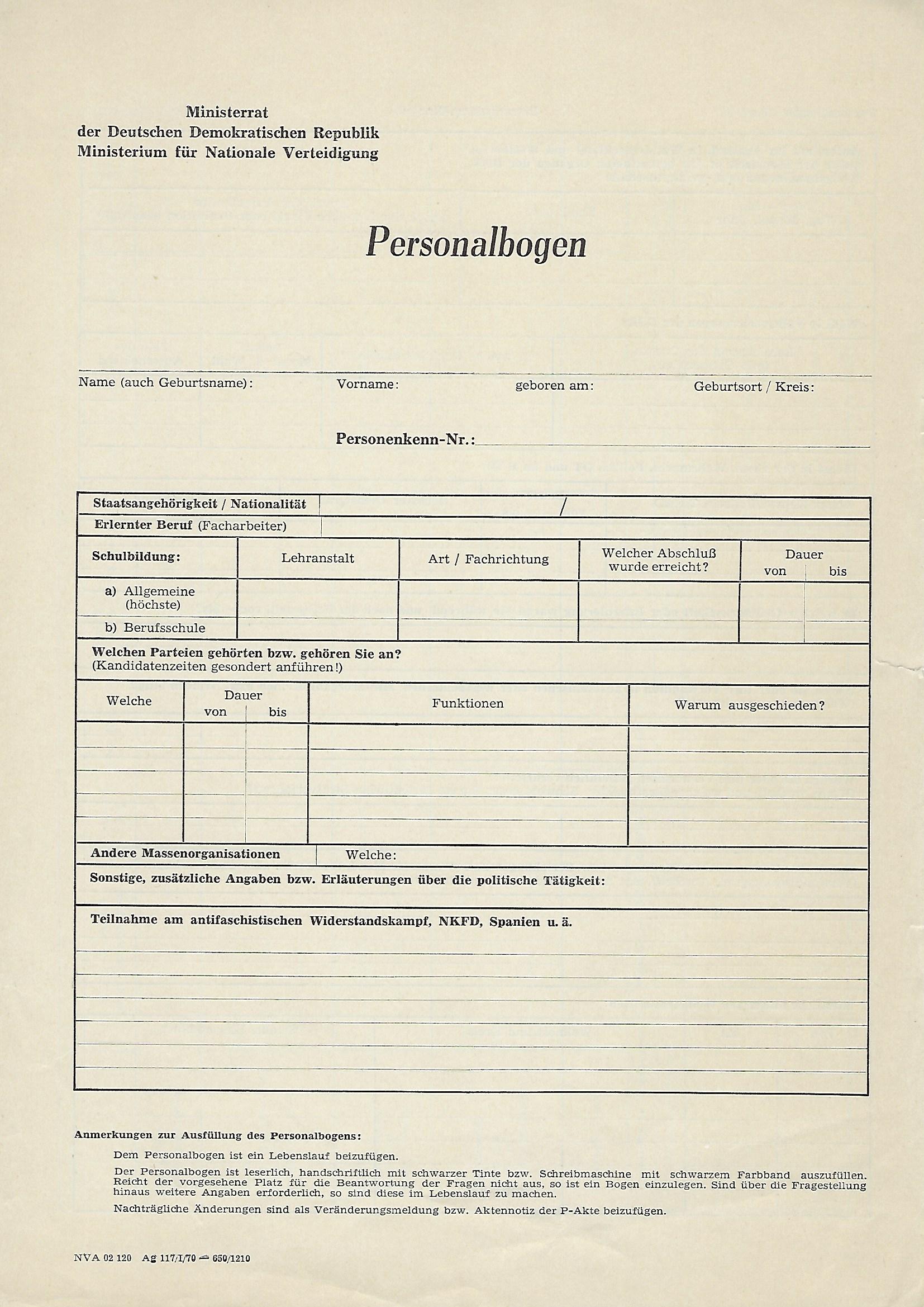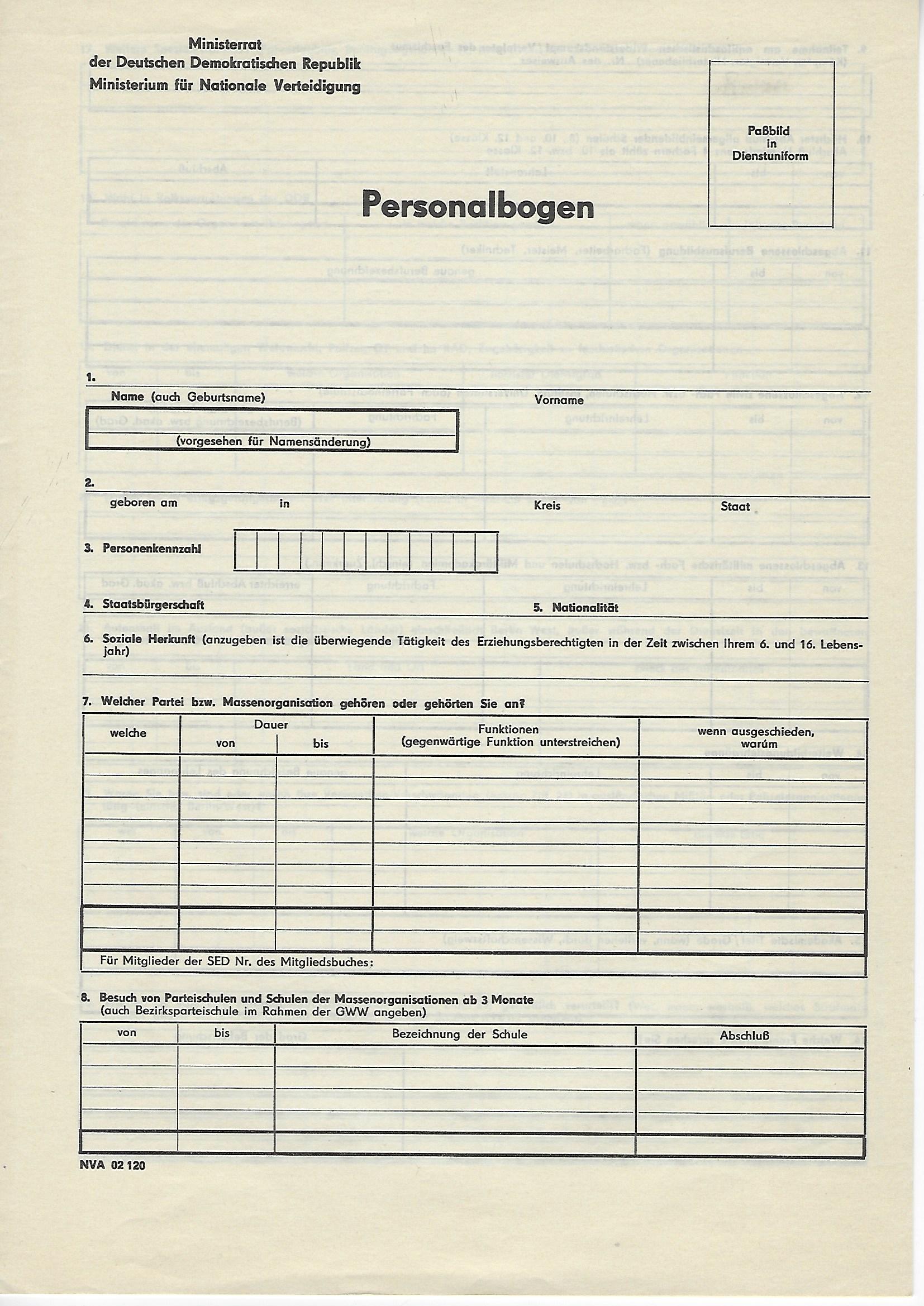 Personalbogen des Ministerrates der DDR;MfNV (andere Person aber nur Titelblatt)) |