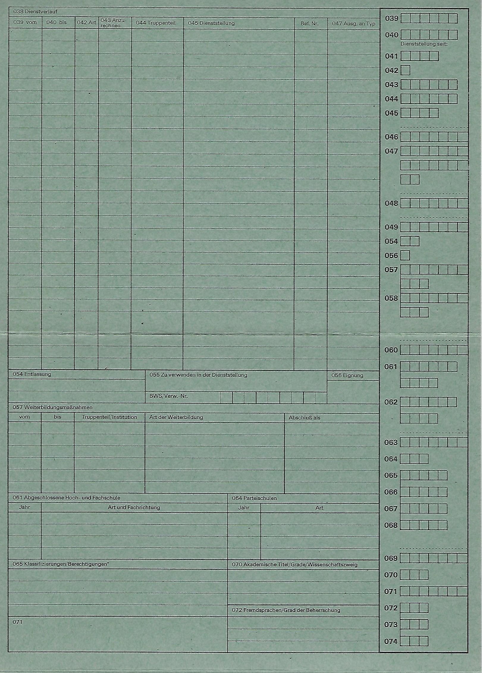 Personalbogen (vier doppelt bedruckte Din A4 Seiten) Teil 2 |