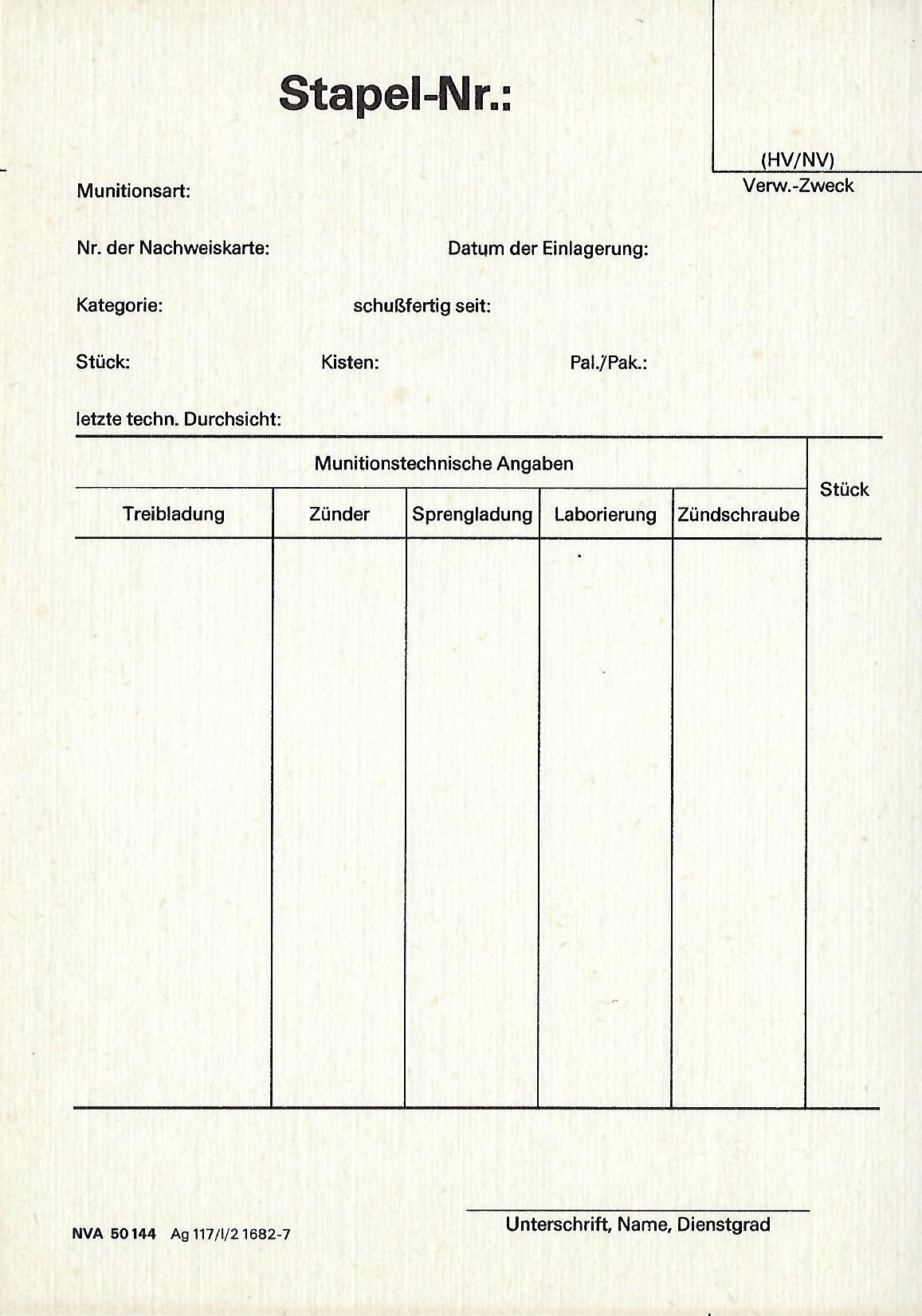 Unfallmerkblatt für die Befördeung von Munition Klasse 1.4 (Bundeswehr - Wendezeit aus der Kaserne in Eggesin) |