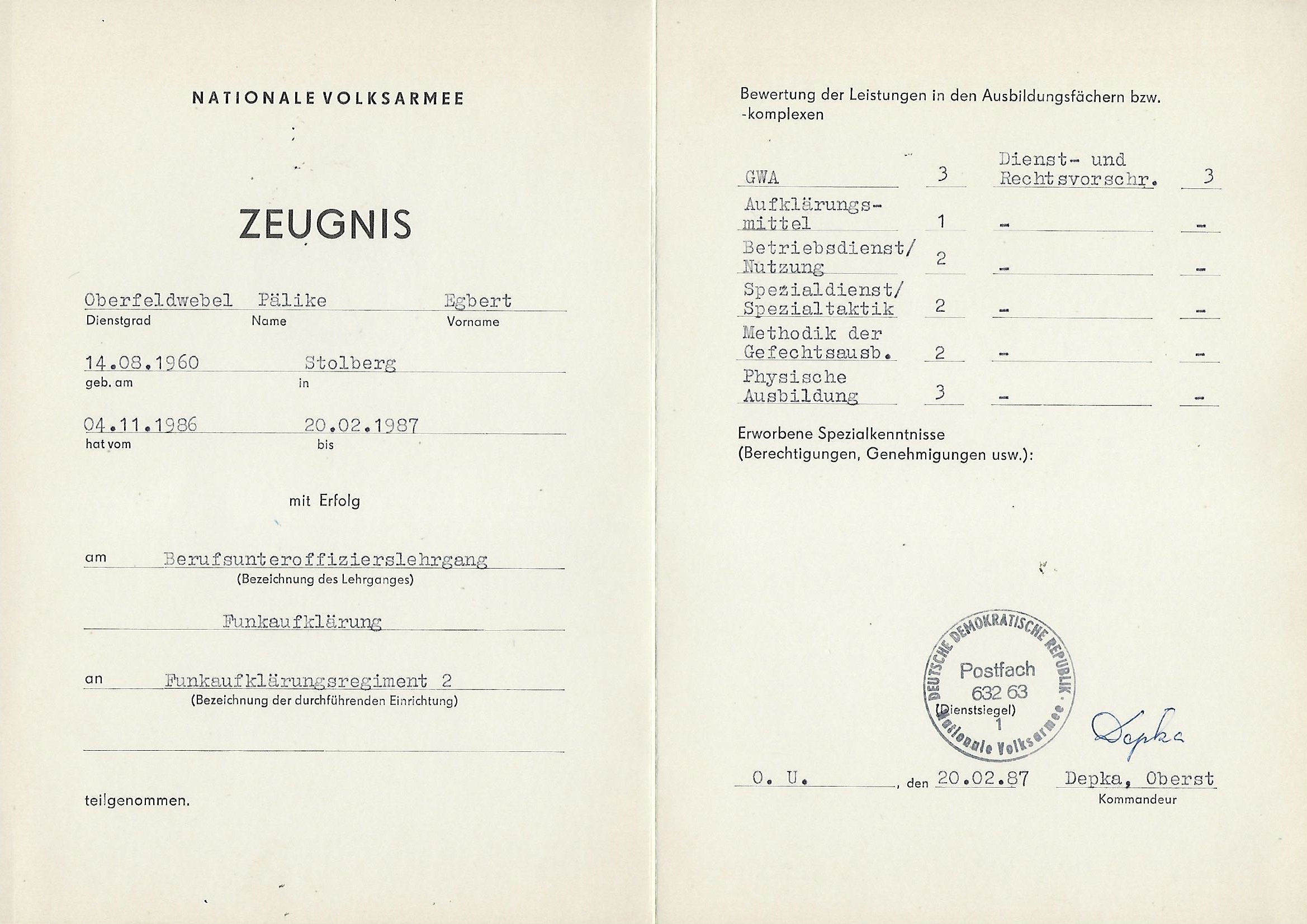 Urkunde - Nationale Volksarmee -In Anerkennung vorbildlicher militärtechnischer Leistungen... Klassifizierungsabzeichen verliehen 1x blanco und 2 x ausgefüllt (kleiner Din A6) |