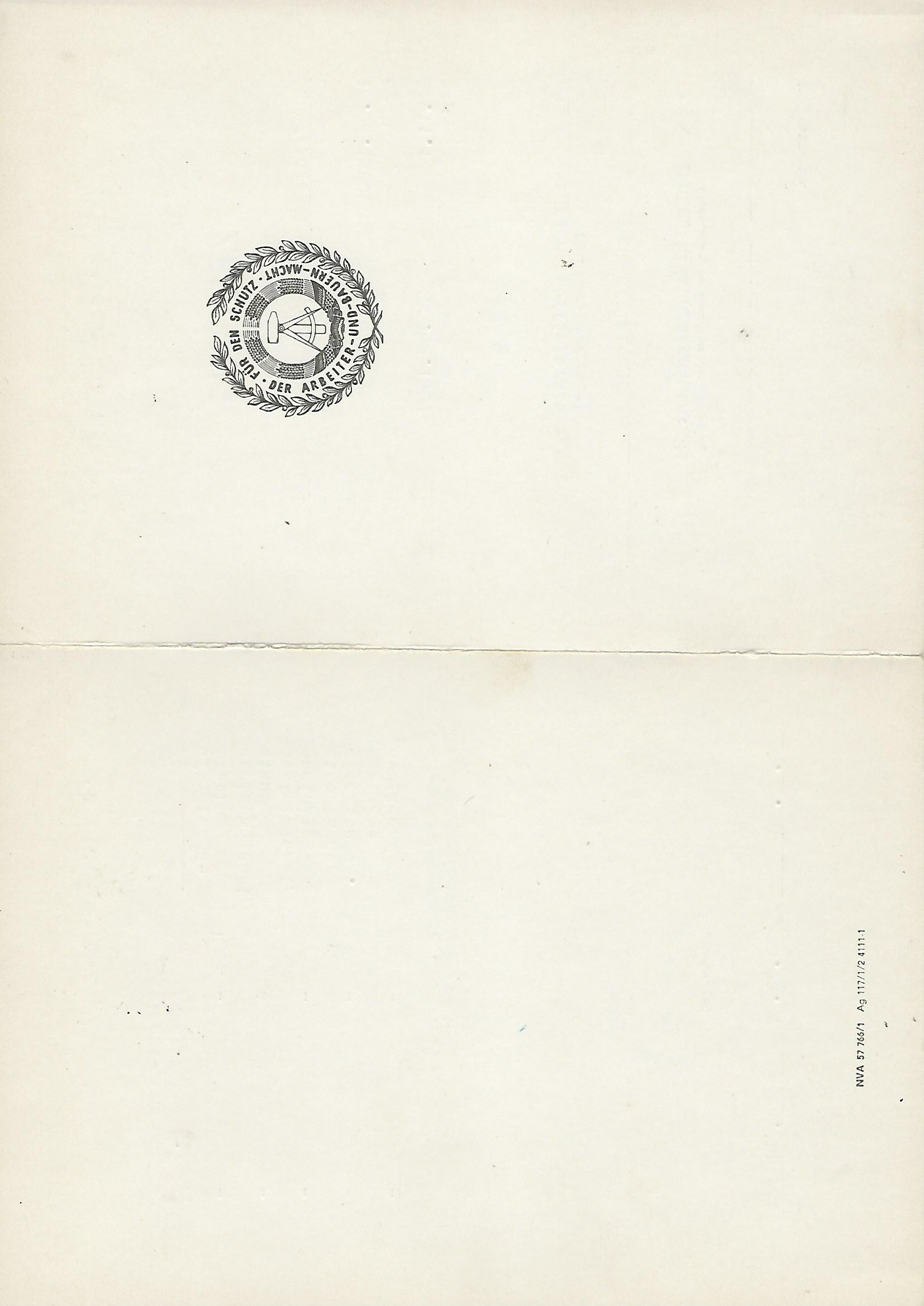 Tischkarte der Grenztruppen der DDR - in der Mitte zum falten (gefaltet Din A6) |