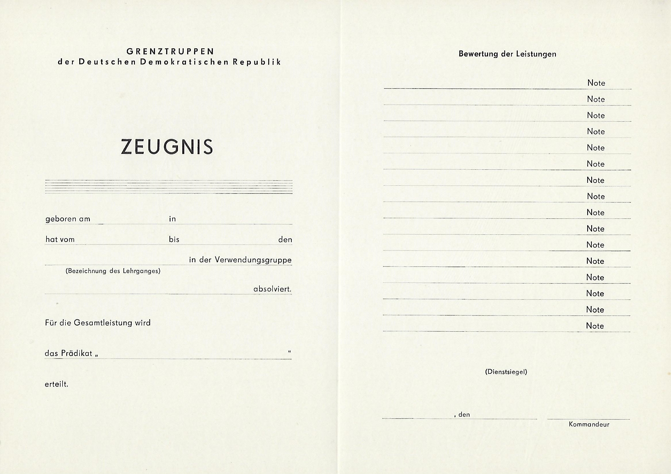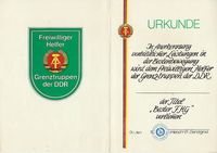 Urkunde - Grenztruppen der DDR - Verleihung des Titel .... Grenztruppen der DDR (kleiner Din A6) |