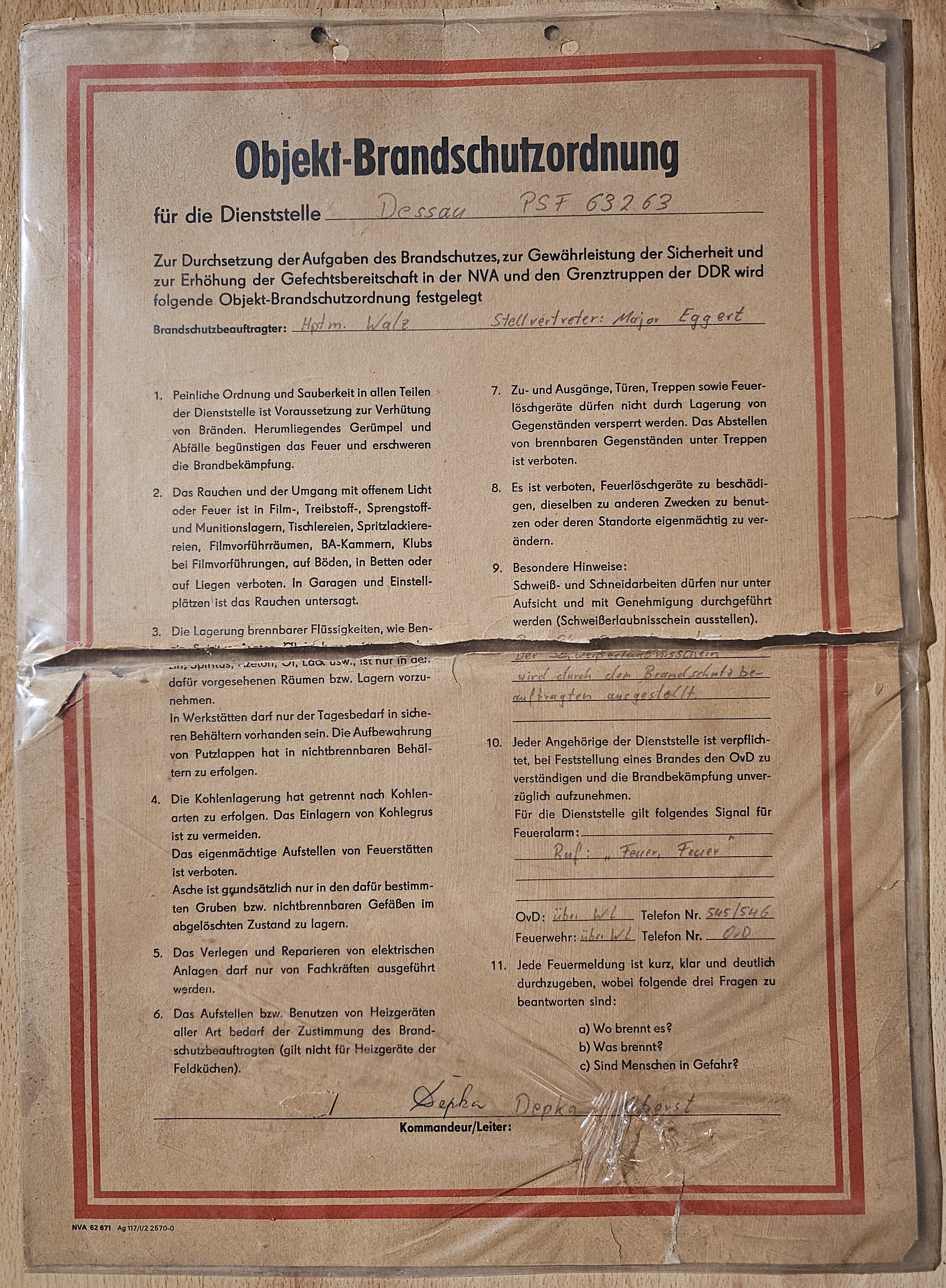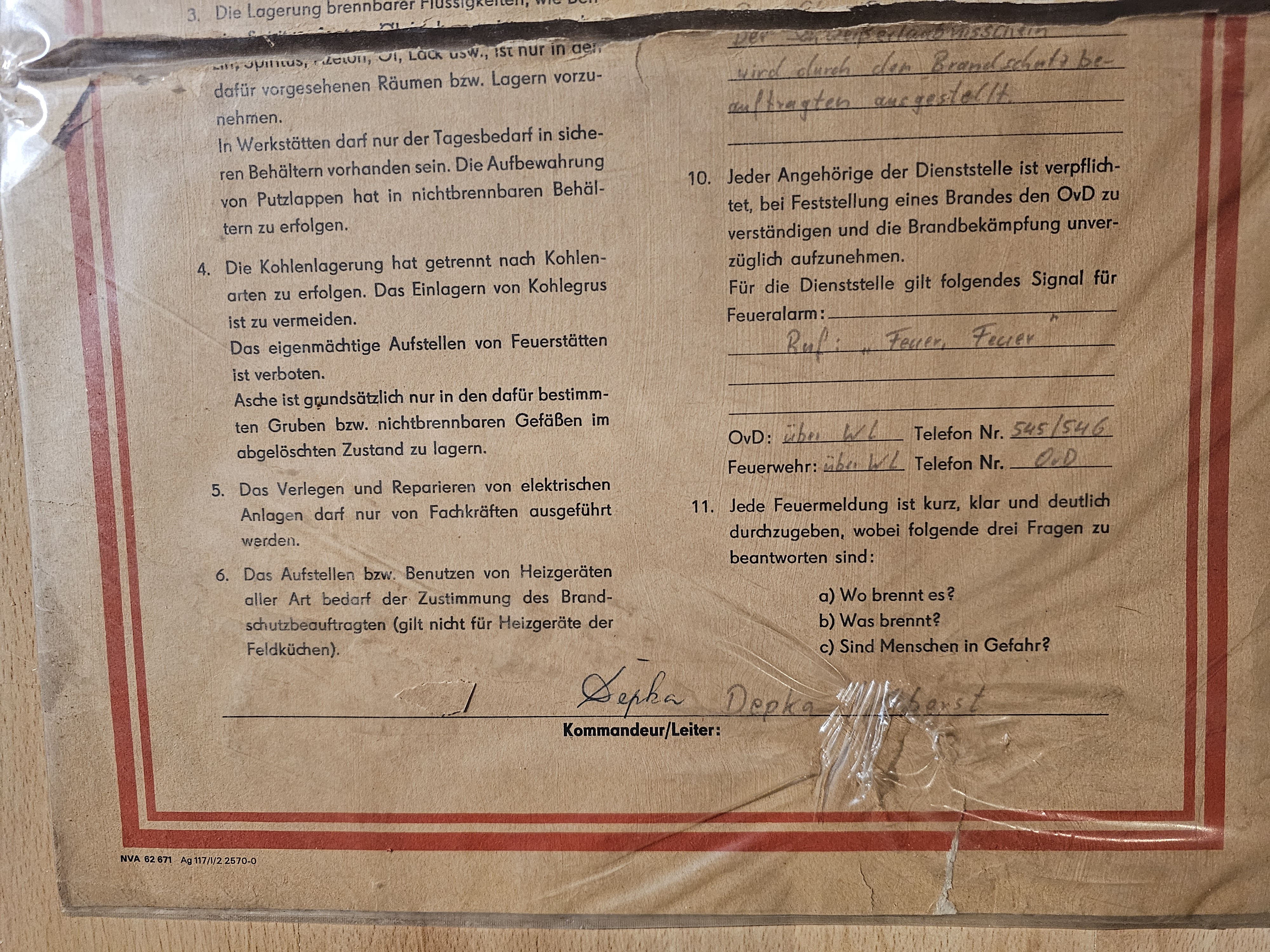 Unfallmerkblatt für die Befördeung von Munition Klasse 1.1 (Bundeswehr - Wendezeit aus der Kaserne in Eggesin) |