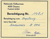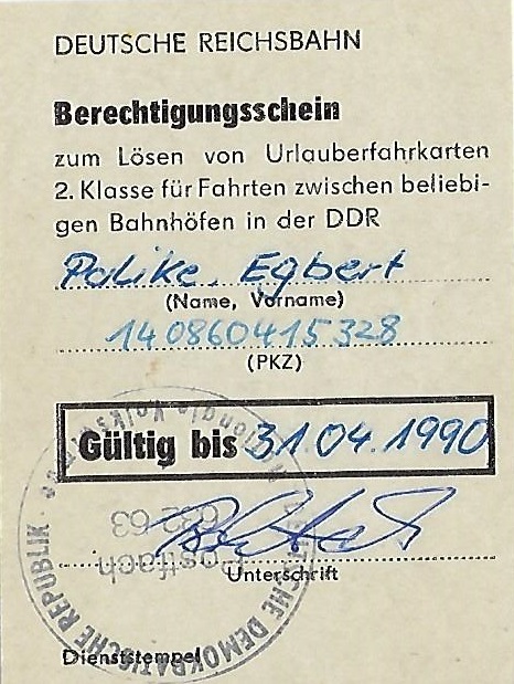 Berechtigungsschein der Deutschen Reichsbahn für Urlauberfahrkarten der NVA ; 1x NVA gestempelt und 1x Grenztruppen gestempelt |