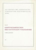 Verleihungsurkunde für das Leistungsabzeichen der NVA in Din A5 |