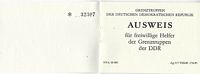 Verleihung : Medaille für Treue Dienste Freiwilliger Helfer beim Schutz der Staatsgrenze der DDR in Din A6 geklappt(Schriftzug Medaille Für.... sind erhaben und in reflektierender Farbe gedruckt was auf dem Bild nicht rüber kommt)1x mit Siegel und 1x blanco |