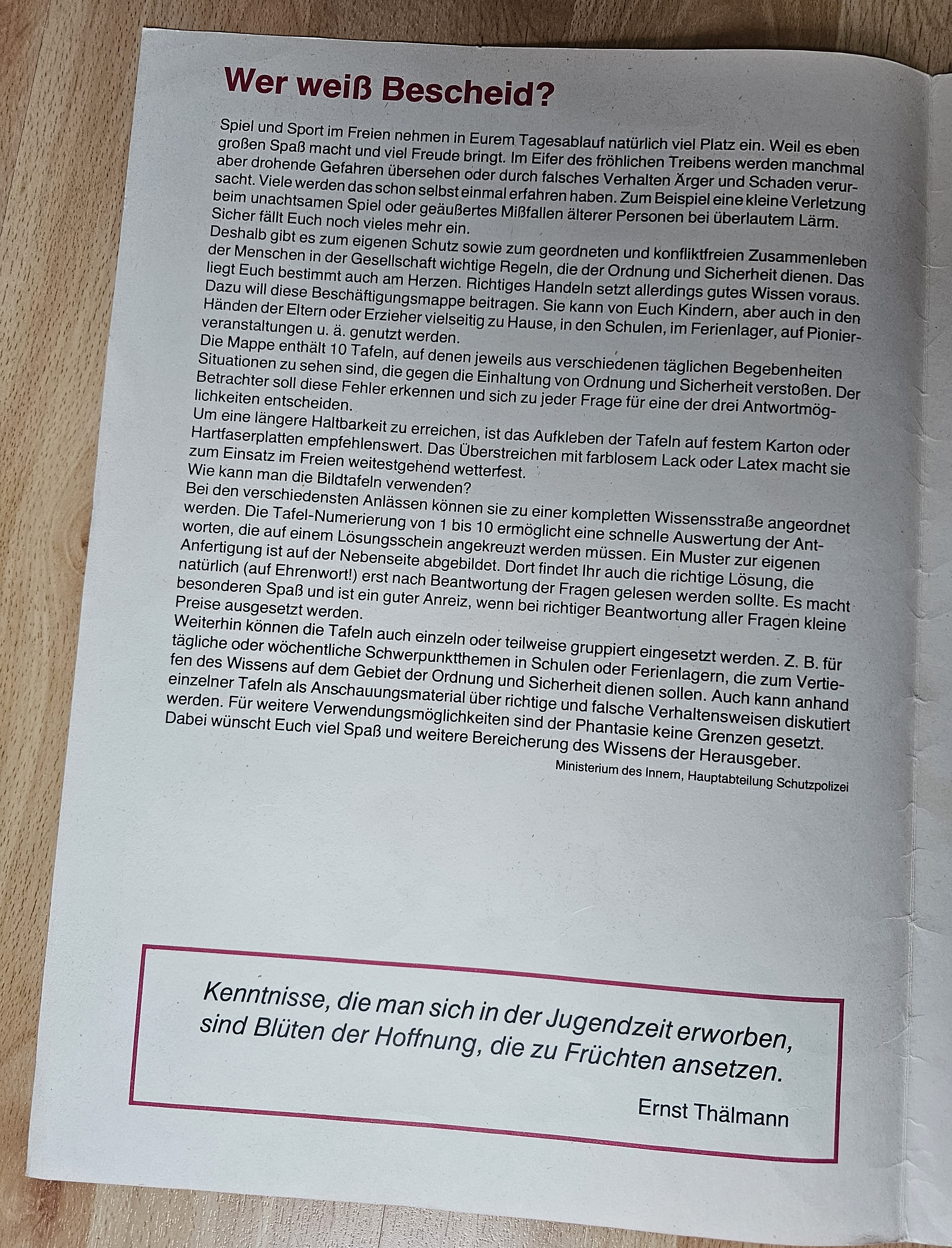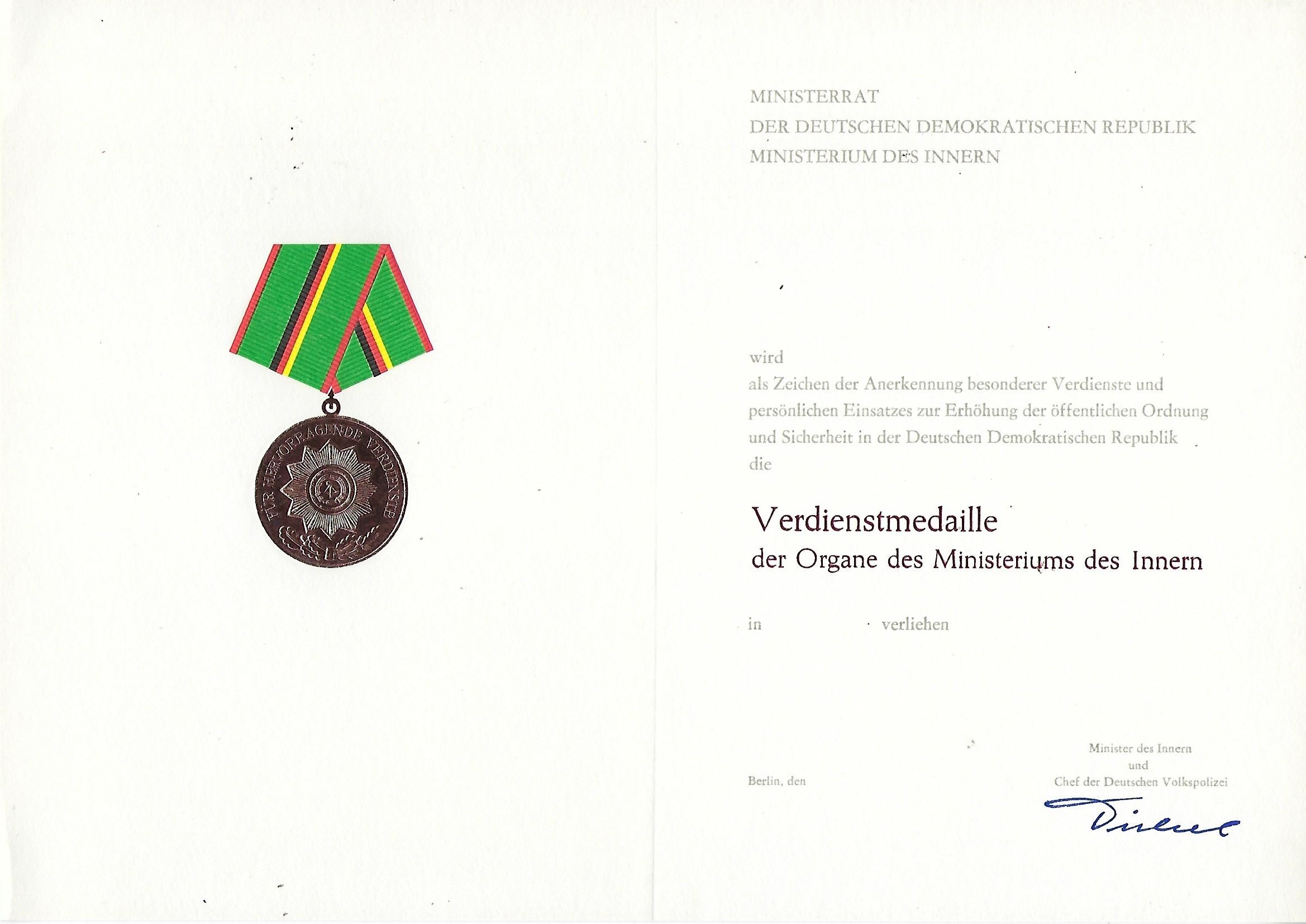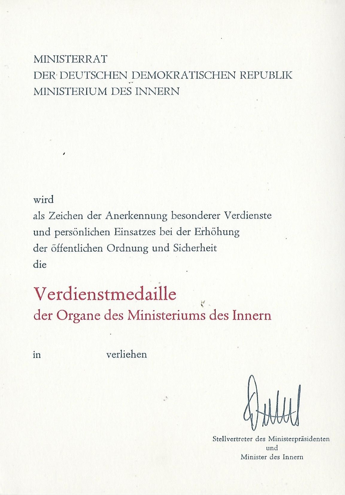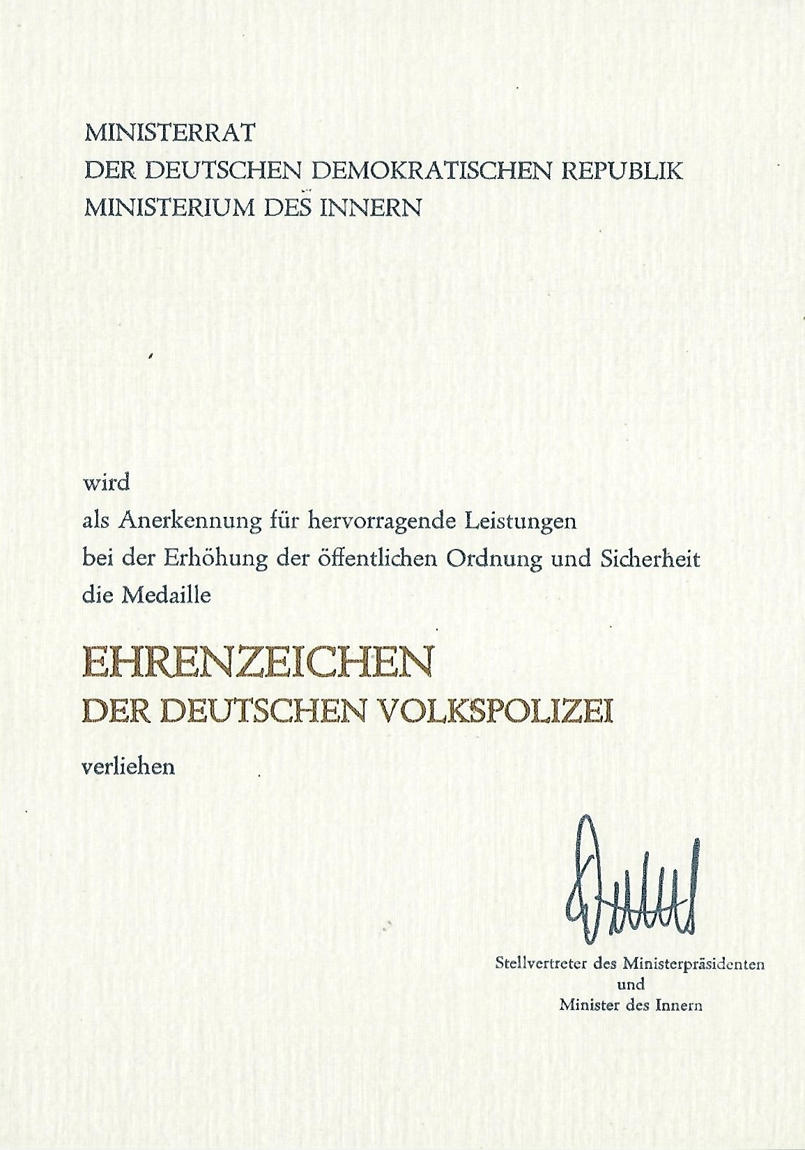 Anschreiben vom Minister und Chef der Deutschen Volkspolizei |