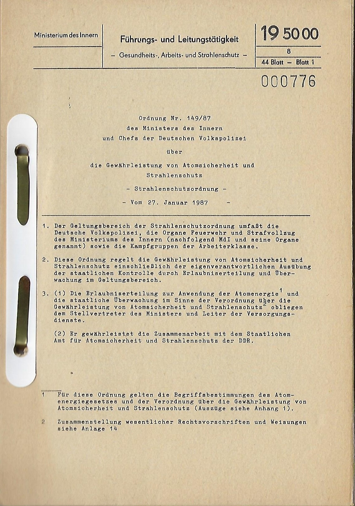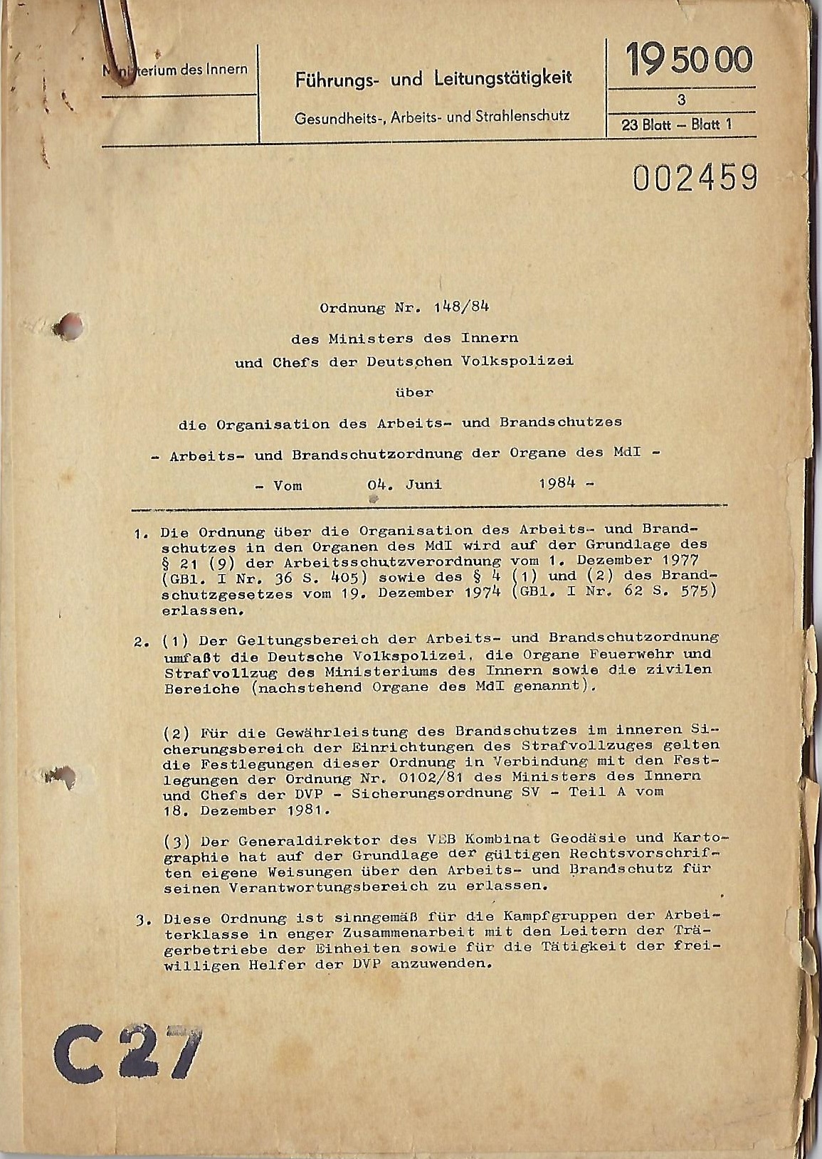 Ordnung 148/84 - Arbeitsund Brandschutzordnung der Organe des MdI |