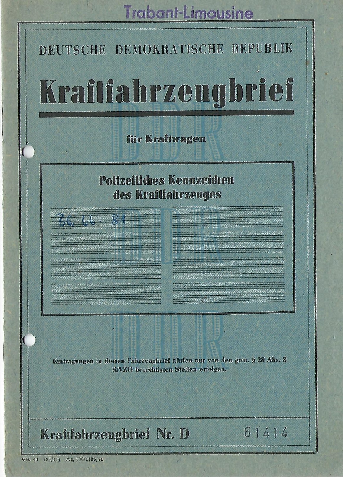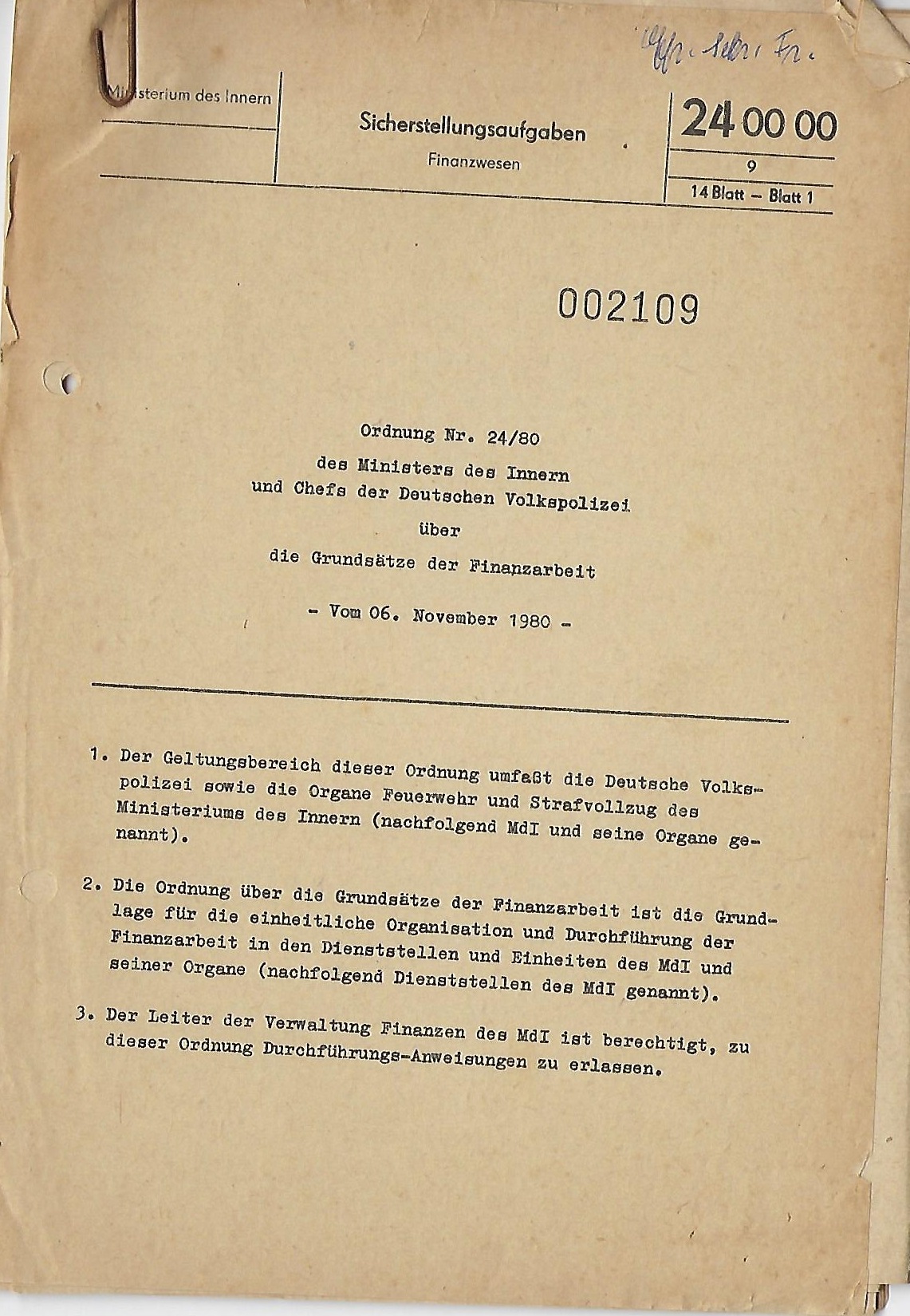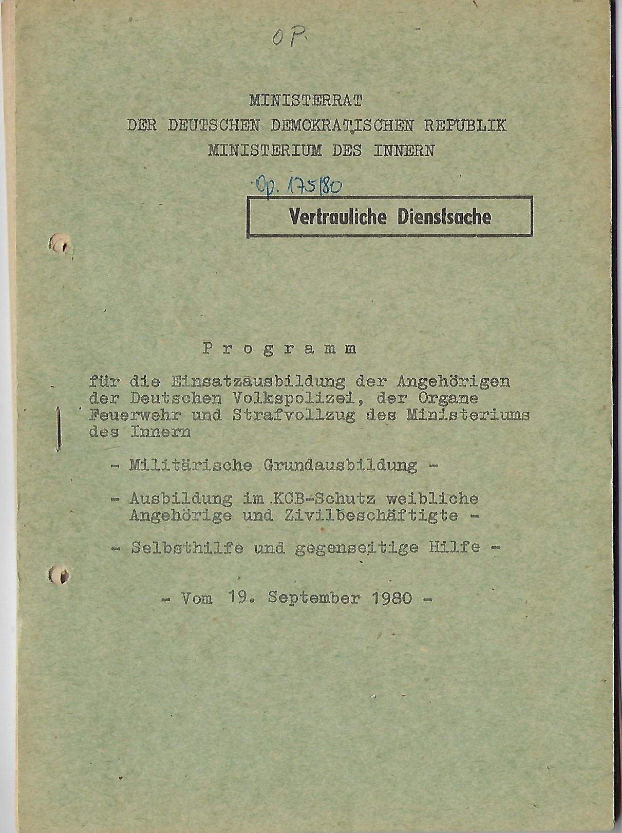 Dienstvorschrift Nr. 08/82 Teil D- Aufgaben der Deutschen Volkspolizei zur Sicherung der Grenzgebiete und Seegewässer - Grenzvorschrift (in Kopie) |