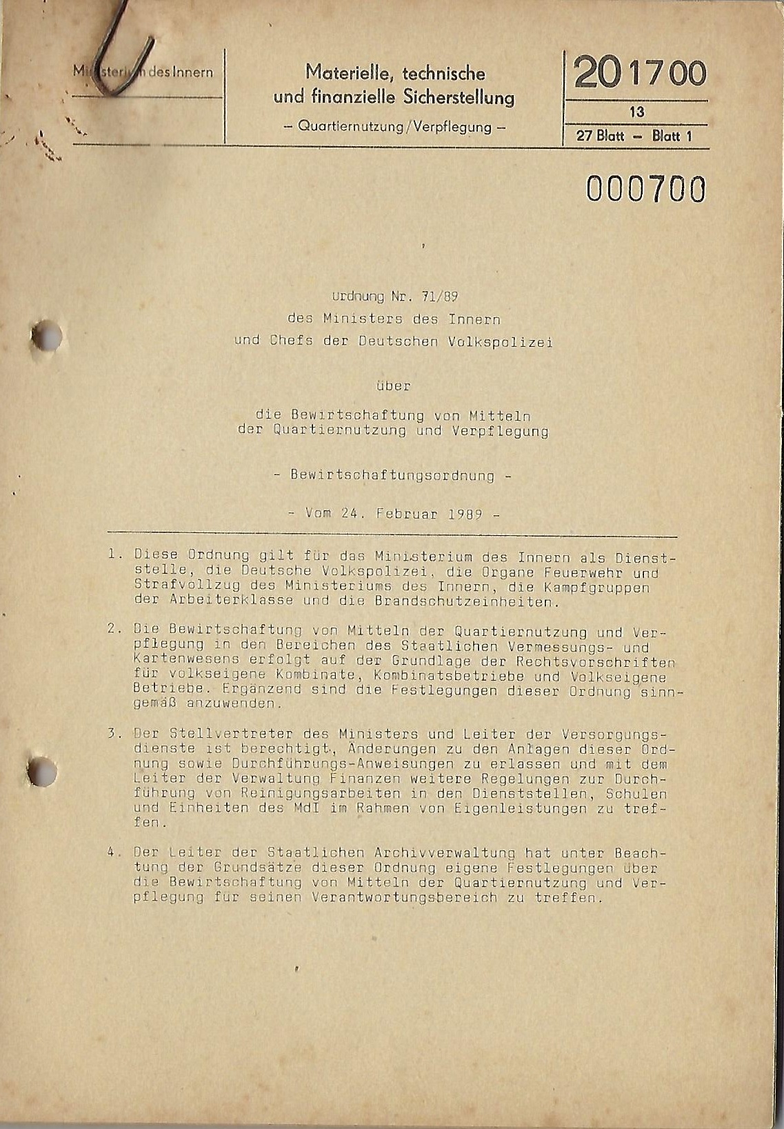Ordnung 71/89 über die Bewirtschaftung von Mitteln der Quartiernutzung und Verpflegung |