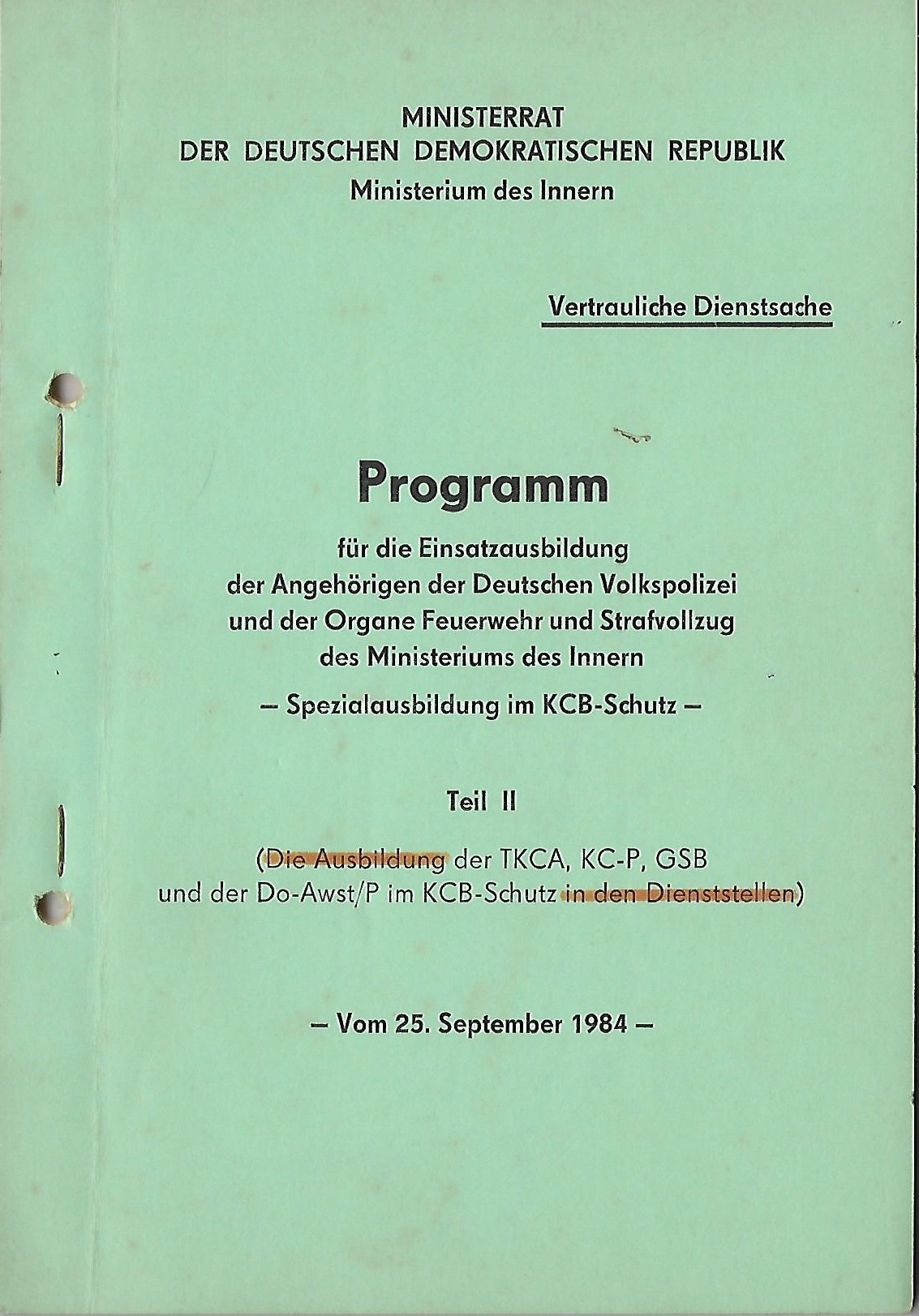 Dienstvorschrift Nr. 08/82 Teil C- Aufgaben der Deutschen Volkspolizei zur Sicherung der Grenzgebiete und Seegewässer - Grenzvorschrift (in Kopie) |