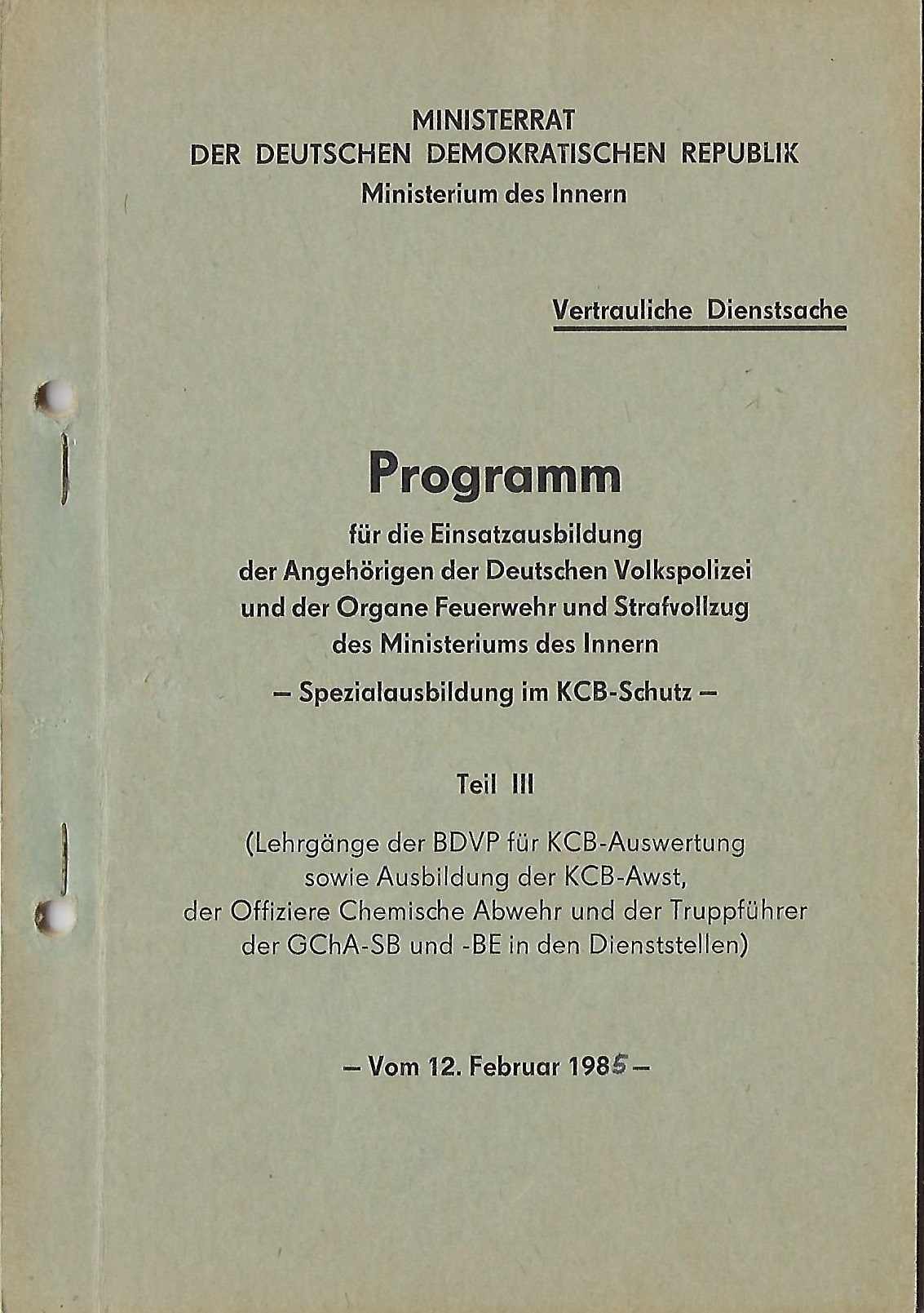 Programm für die Einsatzausbildung der Angehörigen der DVP und der Organe Feuerwehr.... - Spezialausbildung im KCB Schutz- Teil 3 |