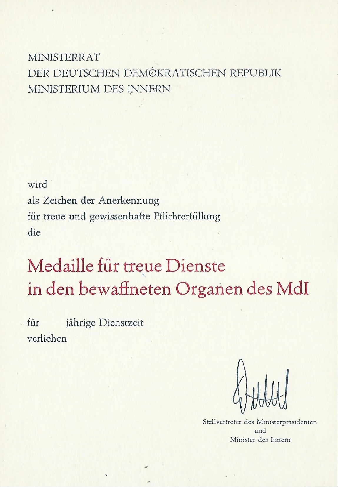 Urkunde für das Qualifikationsabzeichen des MdI |