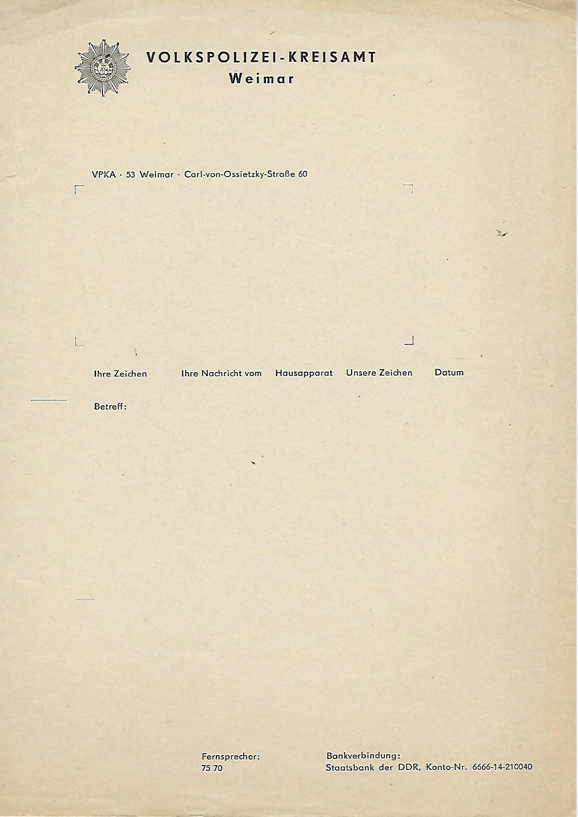 Briefumschlag Volkspolizei Kreisamt Erfurt |