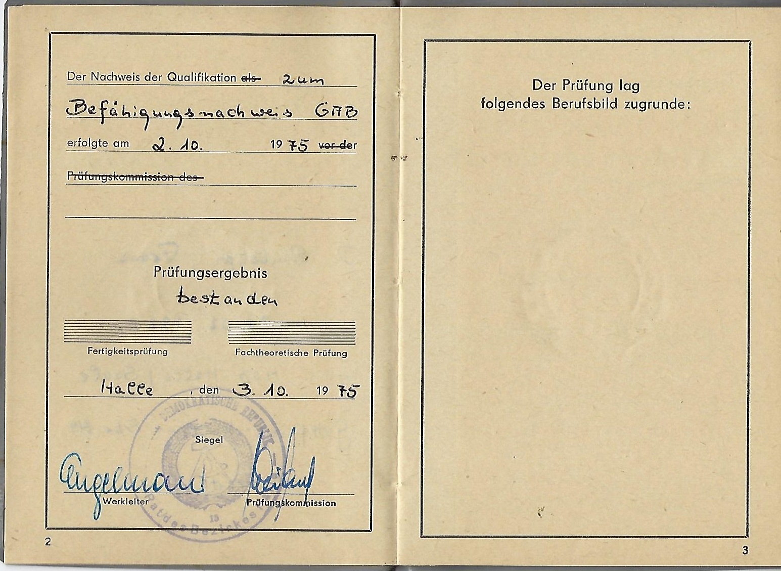 Facharbeiterzeugnis ausgefüllt und blanco |