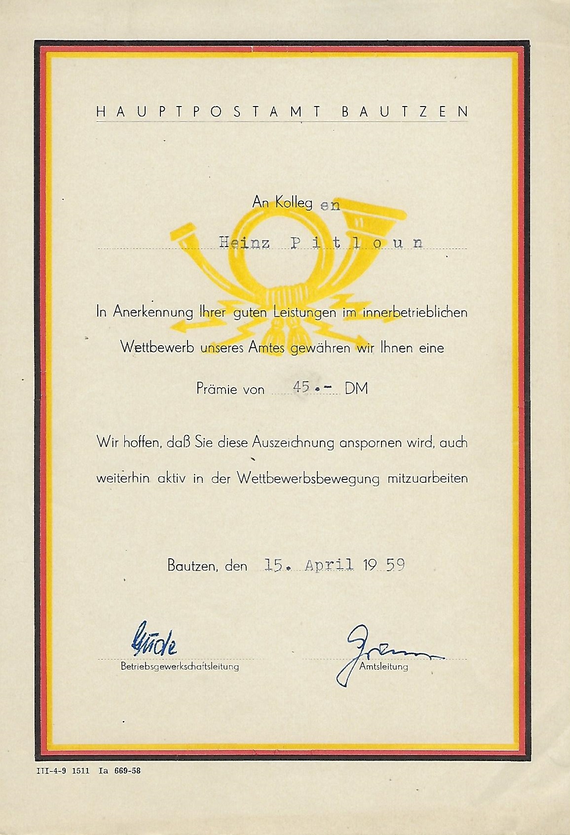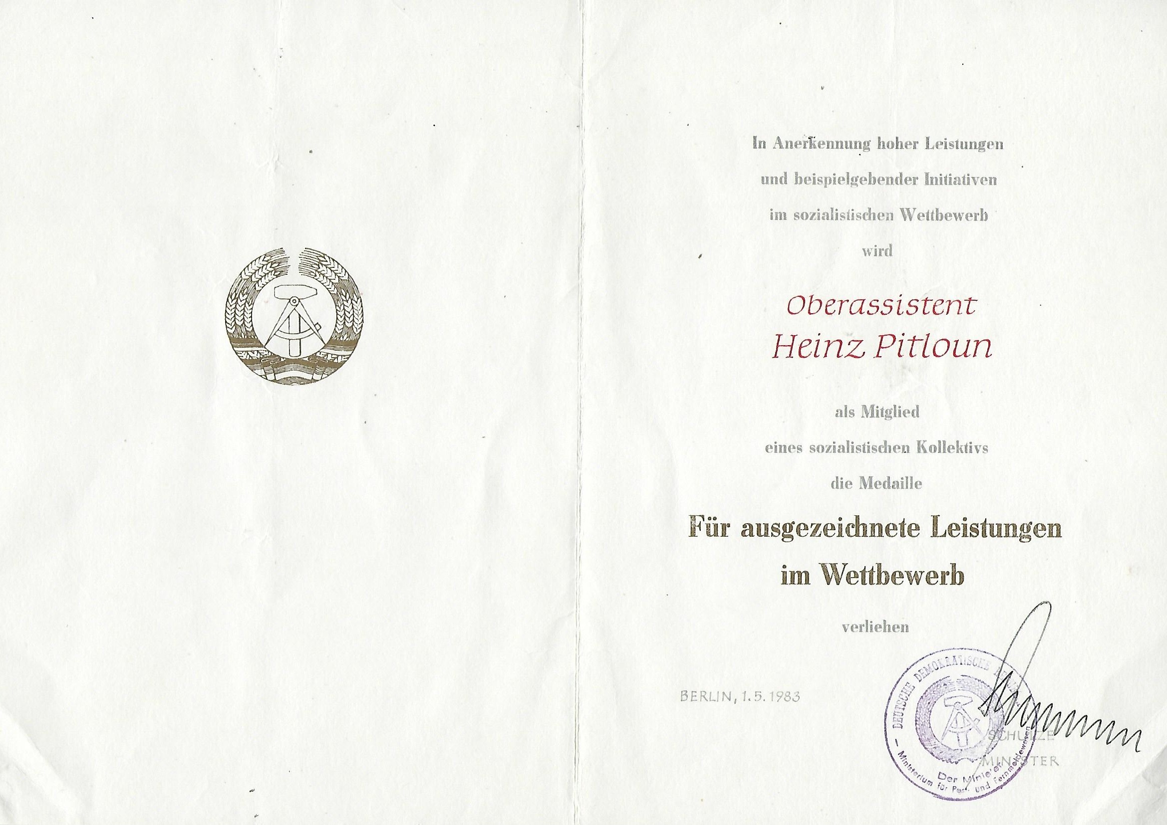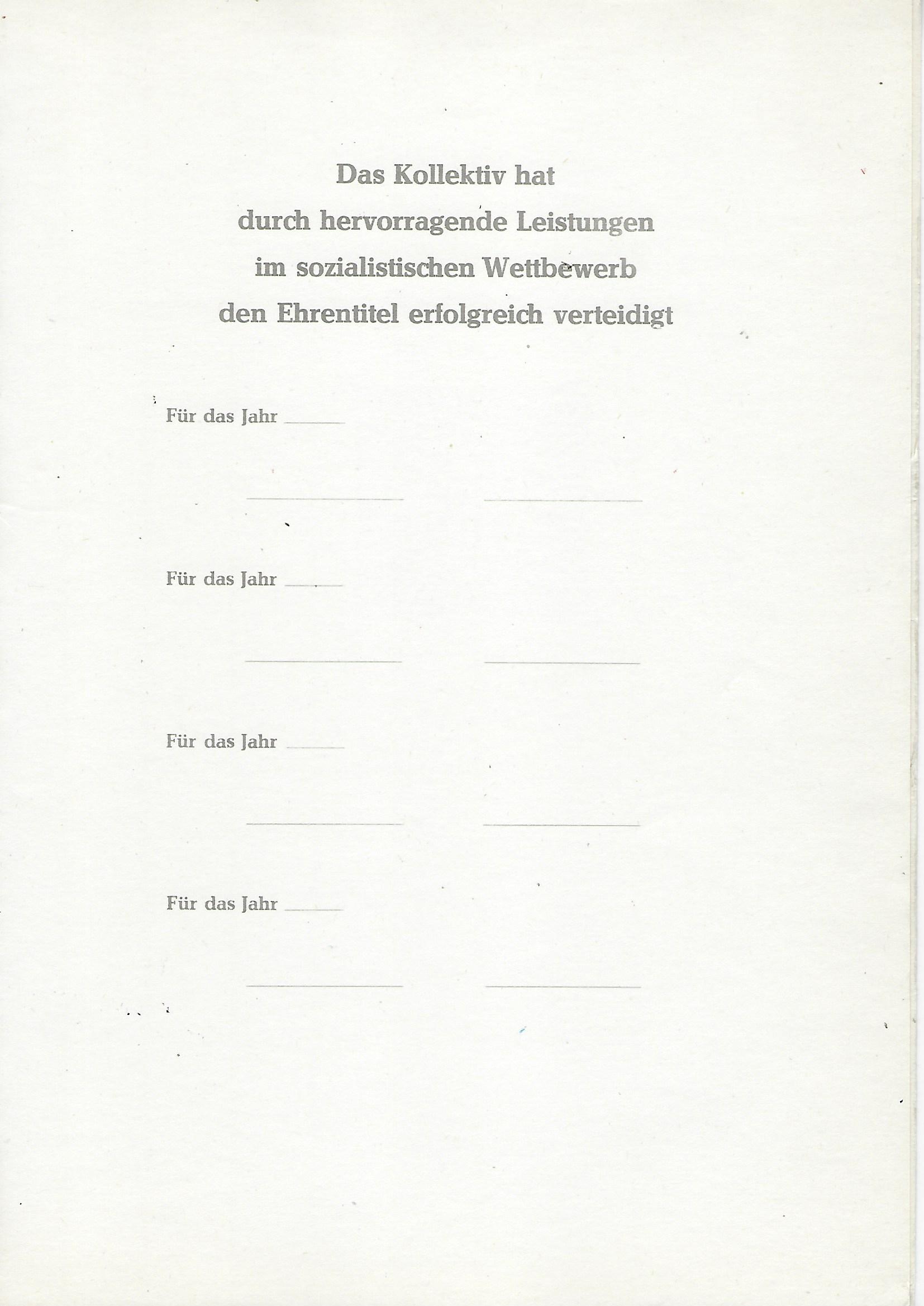 Urkunde Sieger im Sozialistischen Wettbewerb ... |