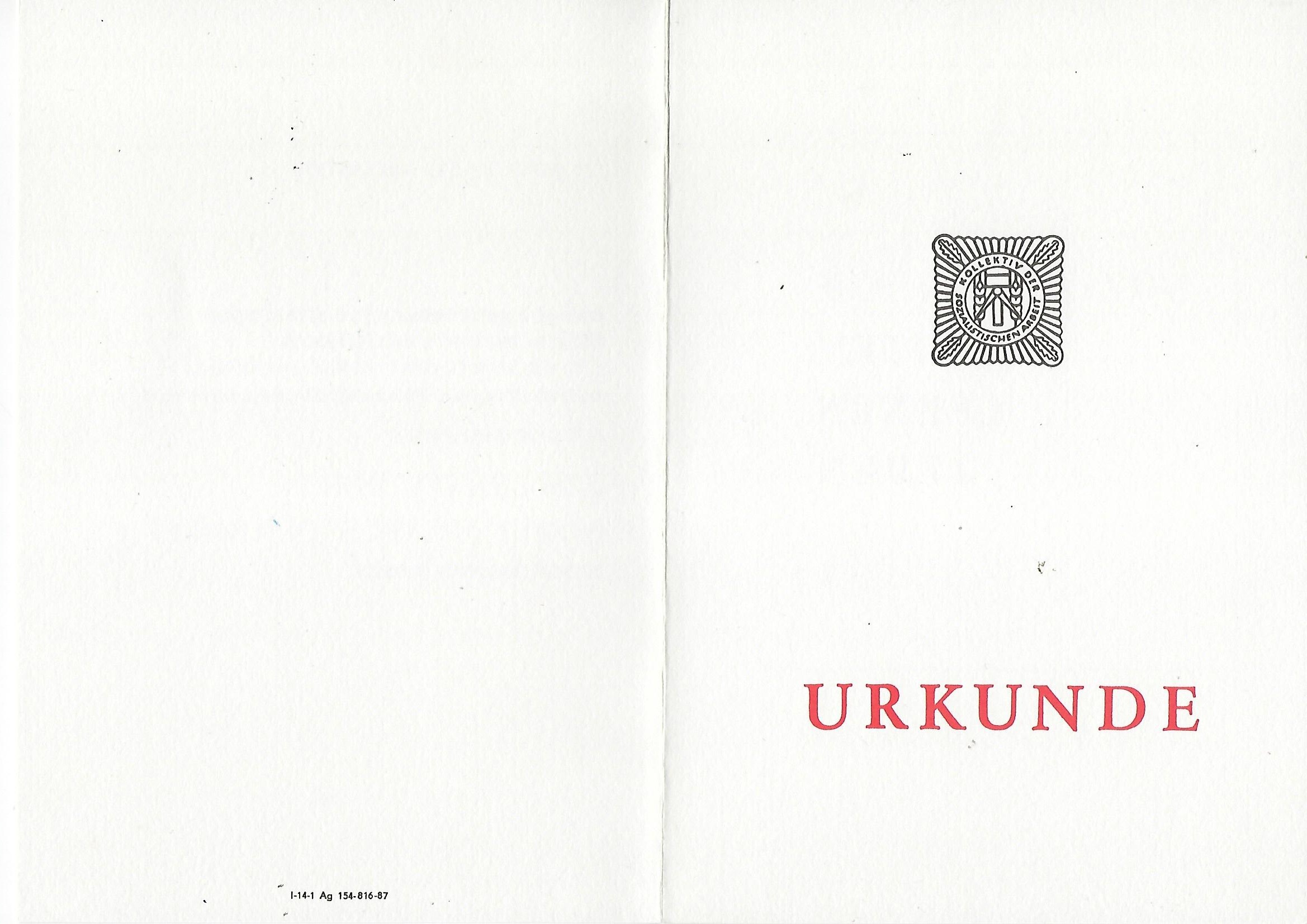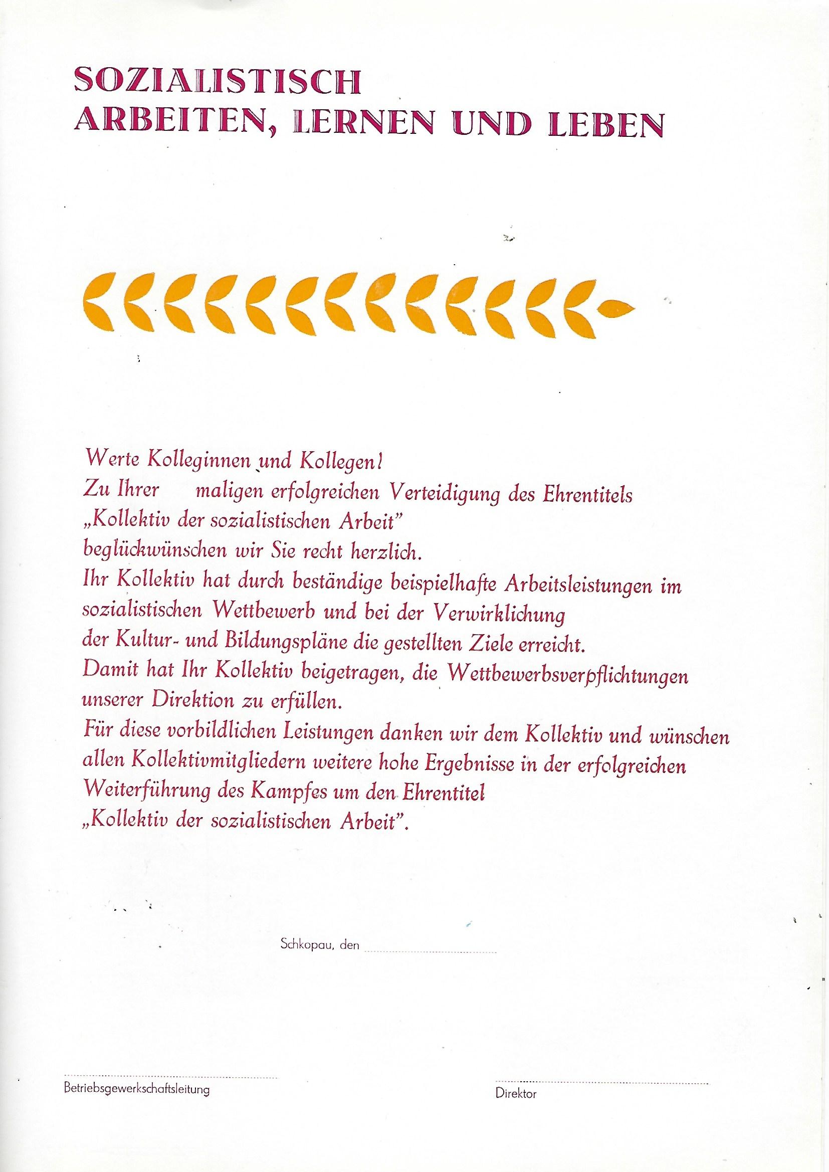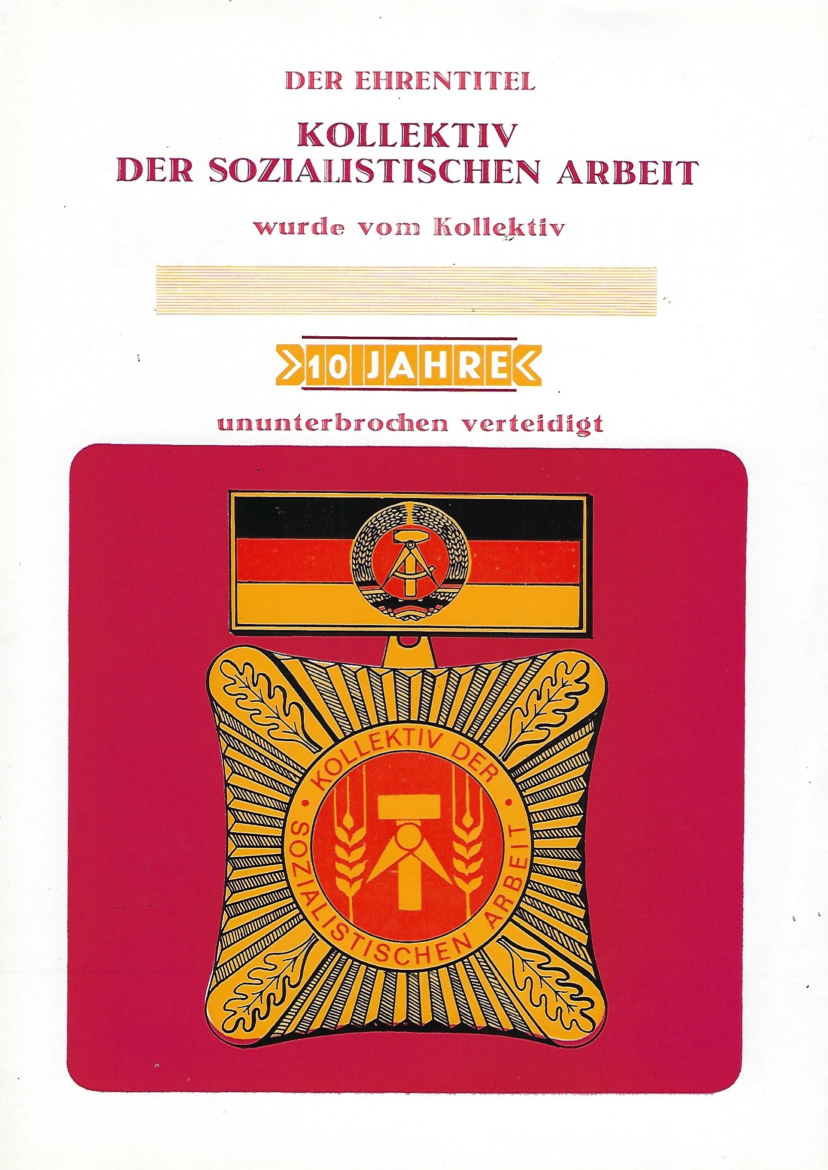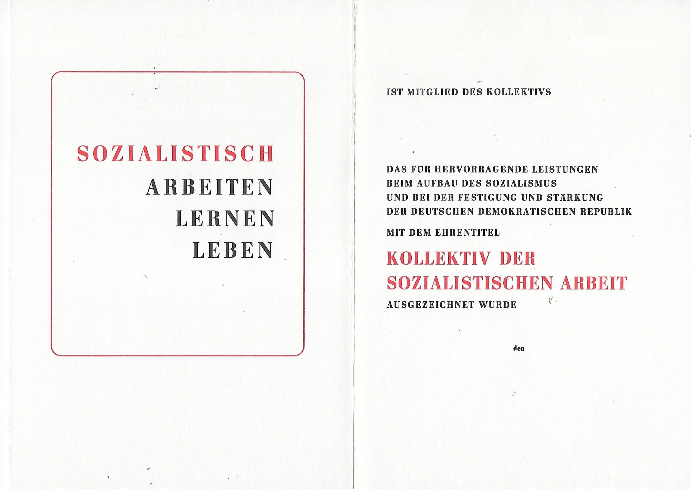 Urkunde Kollektiv der sozialistischen Arbeit |