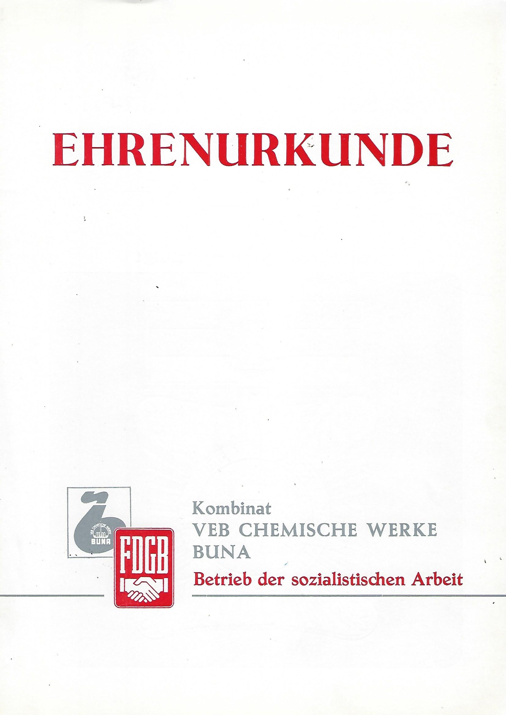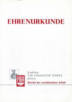 Ehrenurkunde Kombinat VEB Chemische Werke Buna |