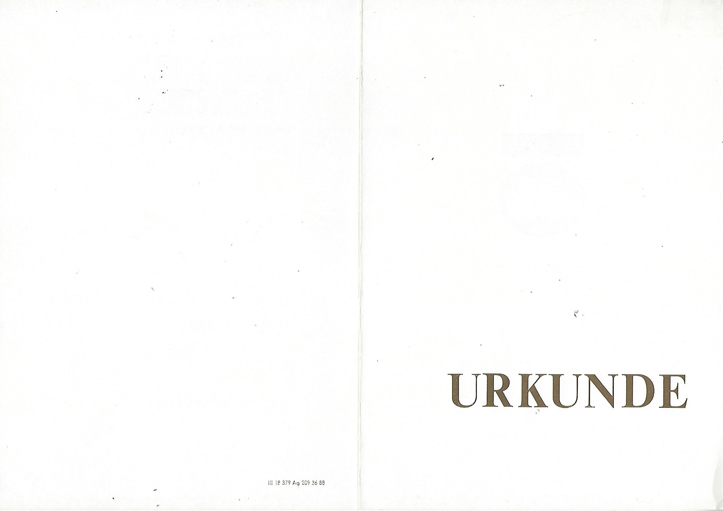 Urkunde 30 jährige treuer Mitarbeit in der Volkssolidarität |