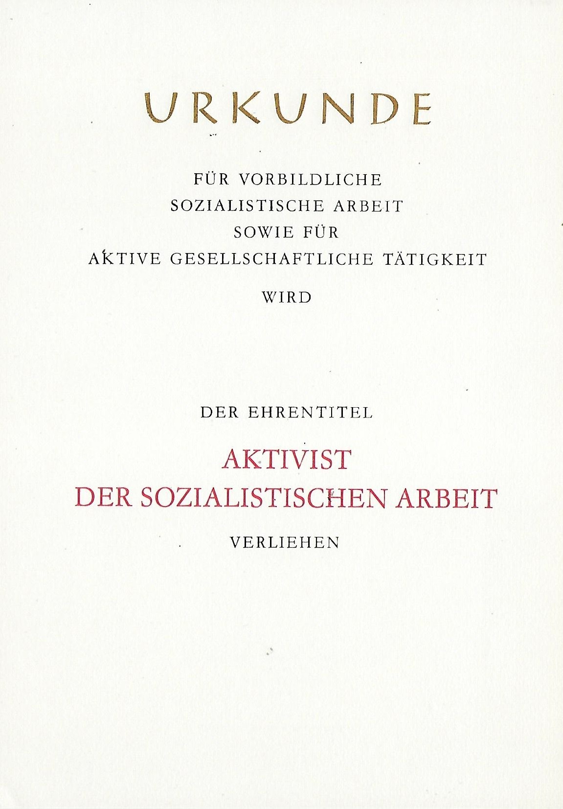 Urkunde Aktivist der Sozialistischen Arbeit |