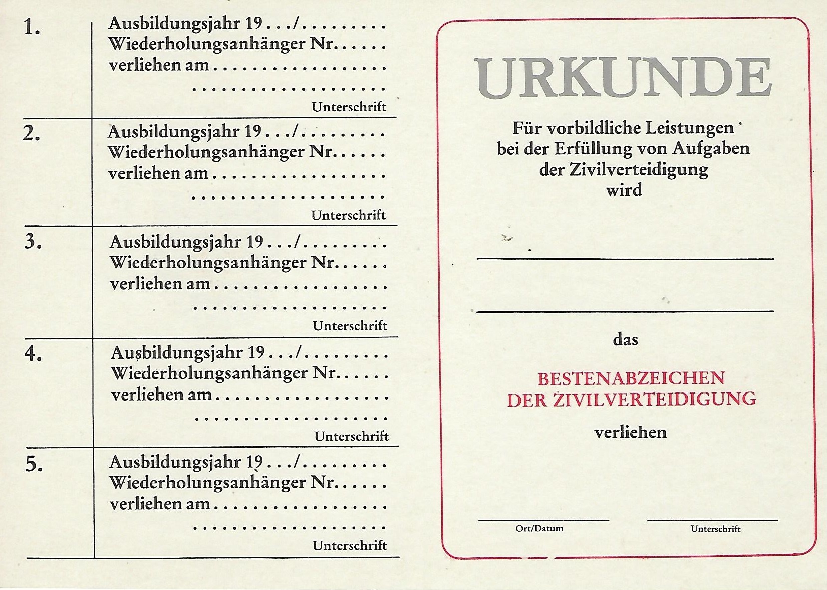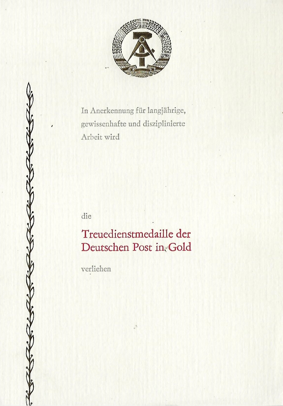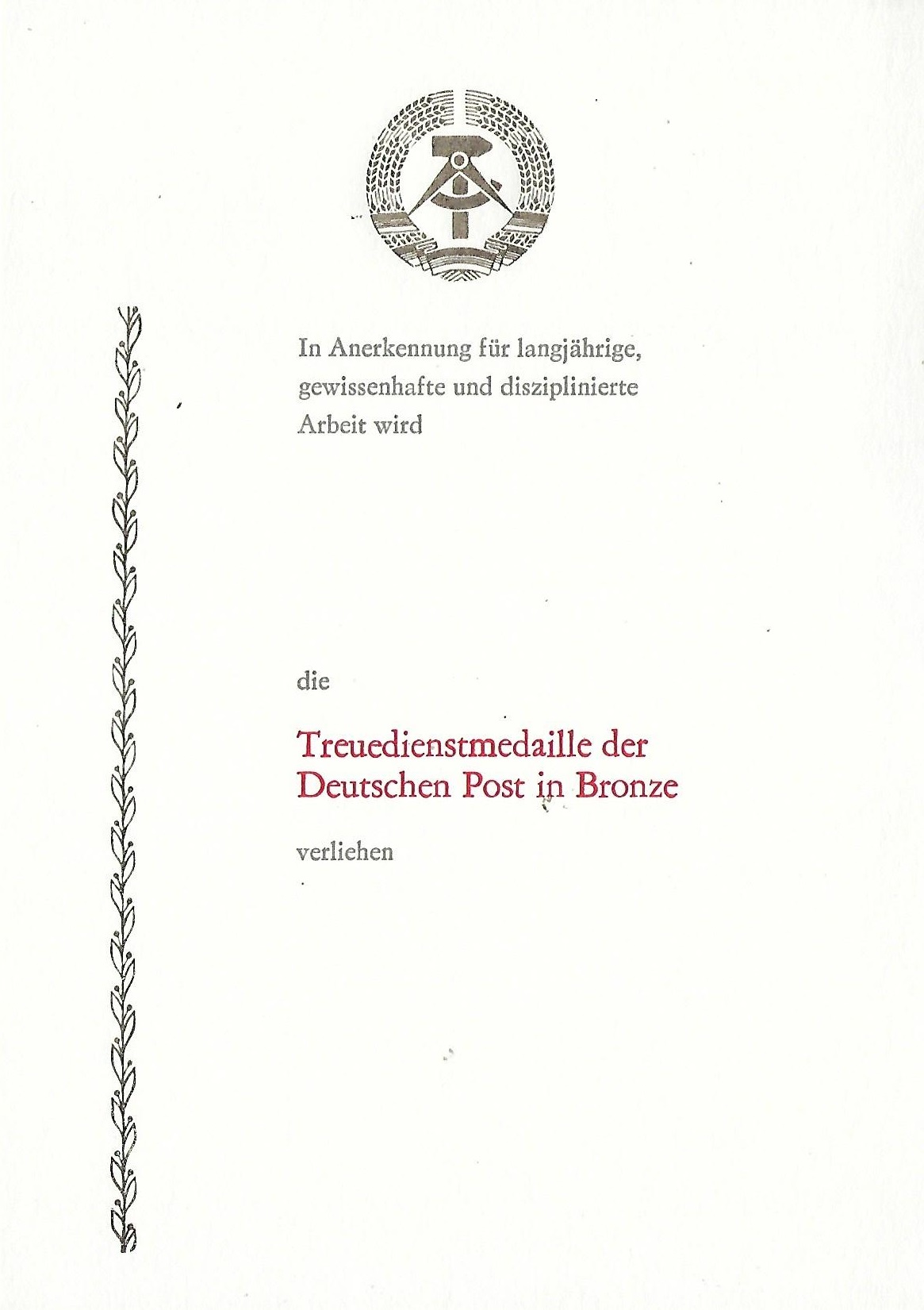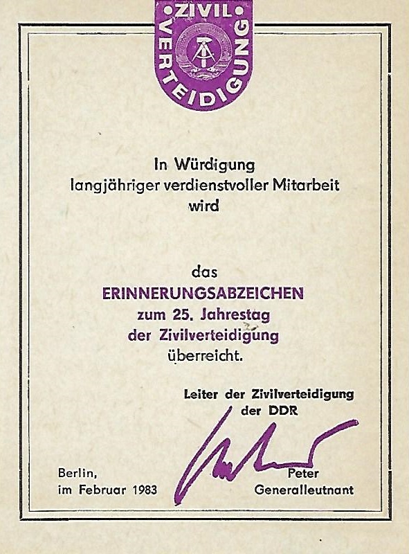 Urkunde für 300 Geleistete Arbeitsstunden im Nationalen Aufbauwerk |