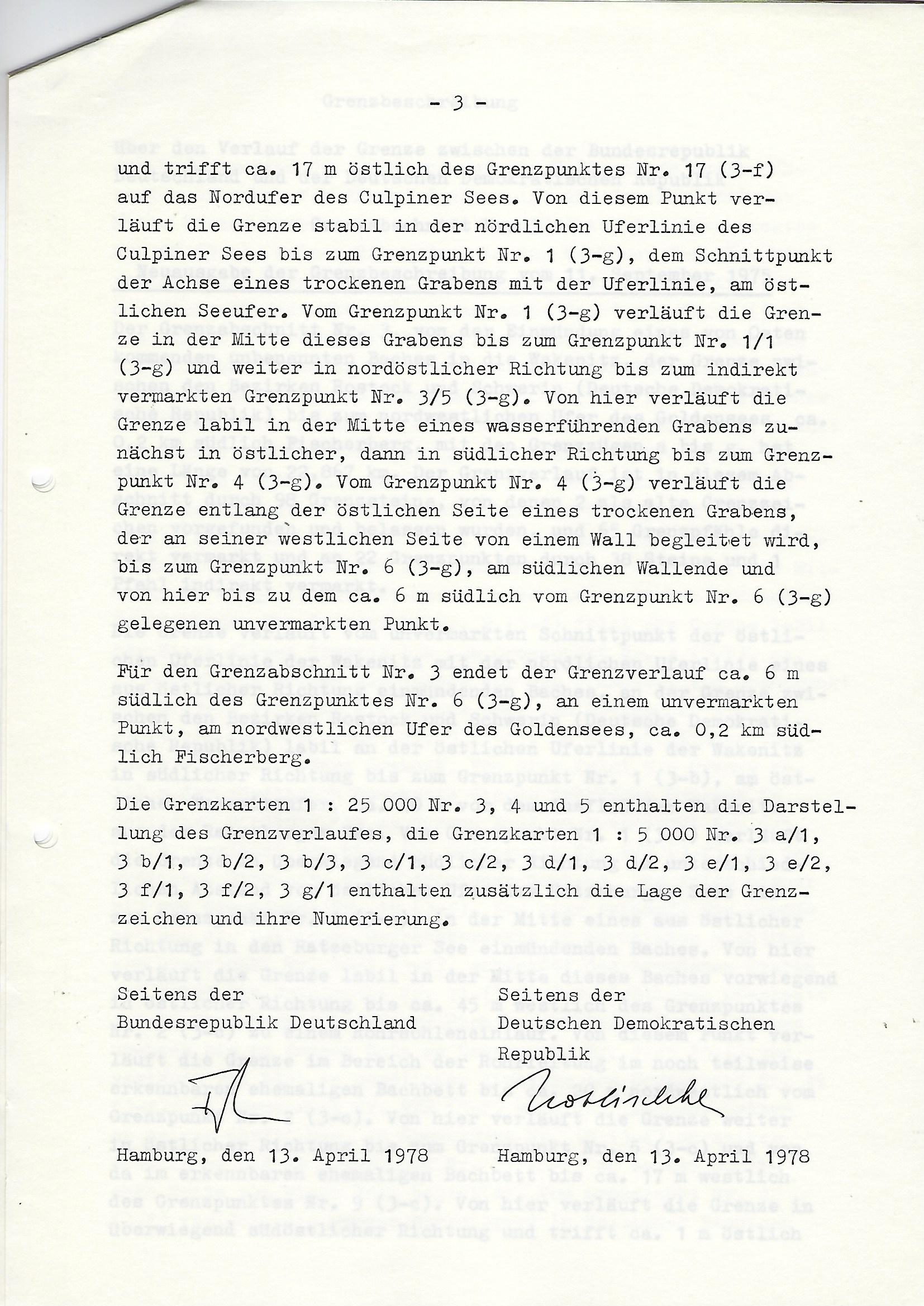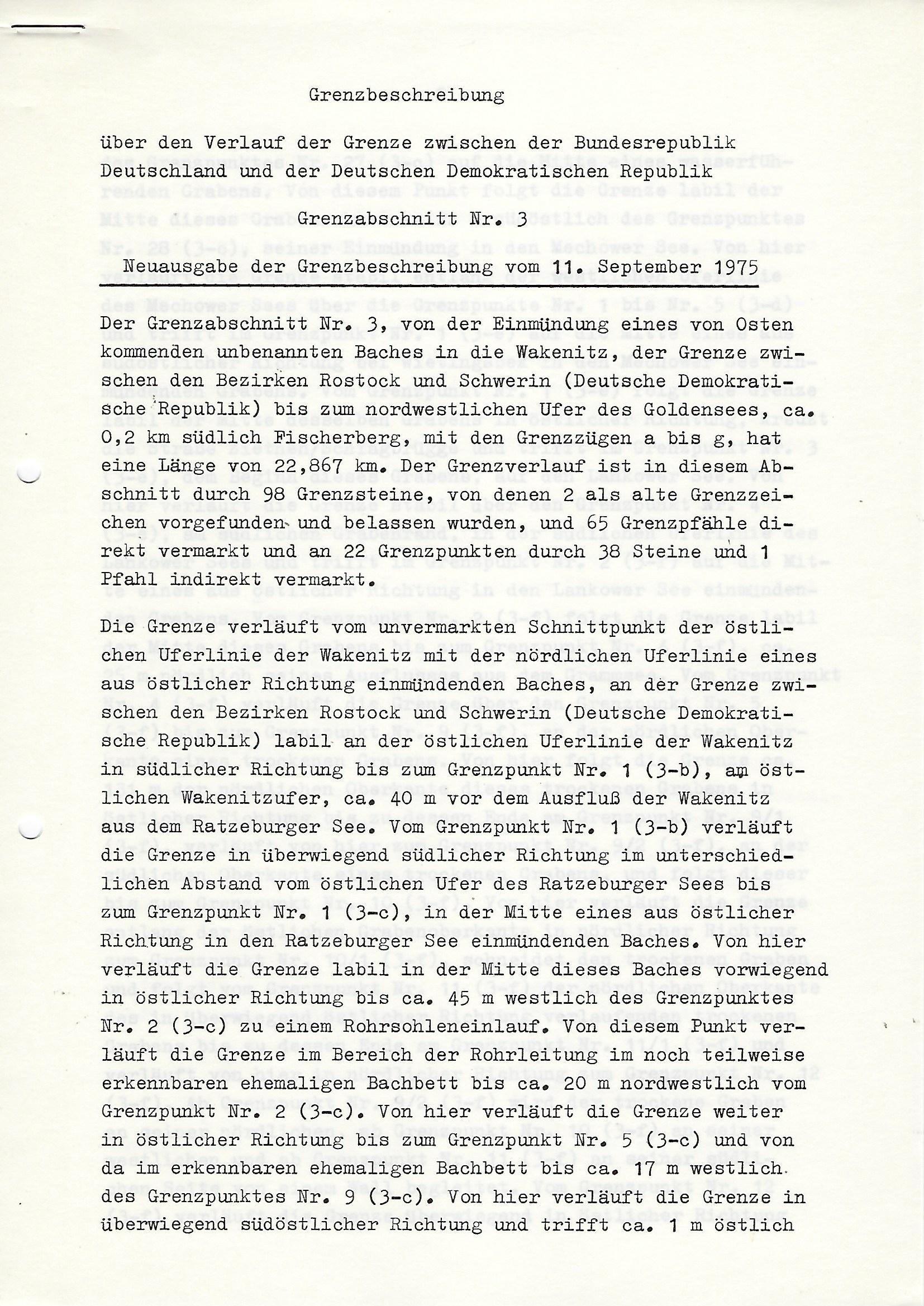 Grenzbeschreibung über den Verlauf der Grenze zwischen der BRD und der DDR
