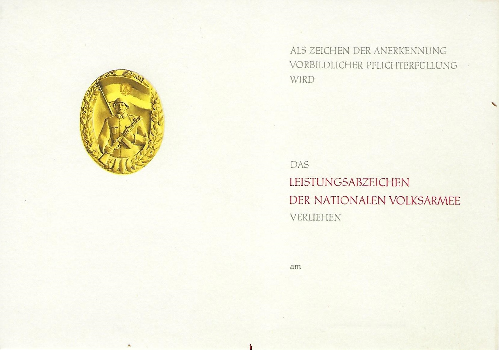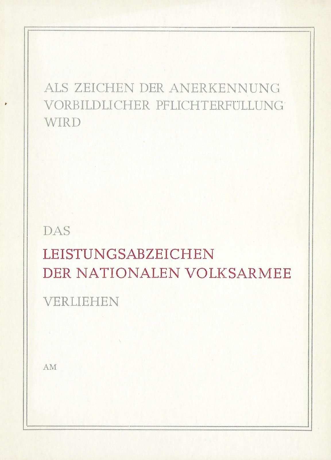 Verleihungsurkunde für das Leistungsabzeichen der NVA in Din A5 |