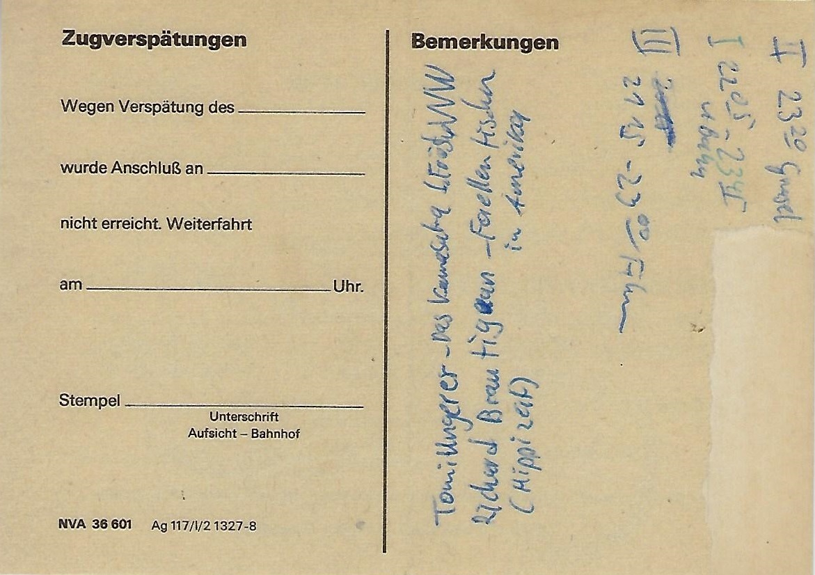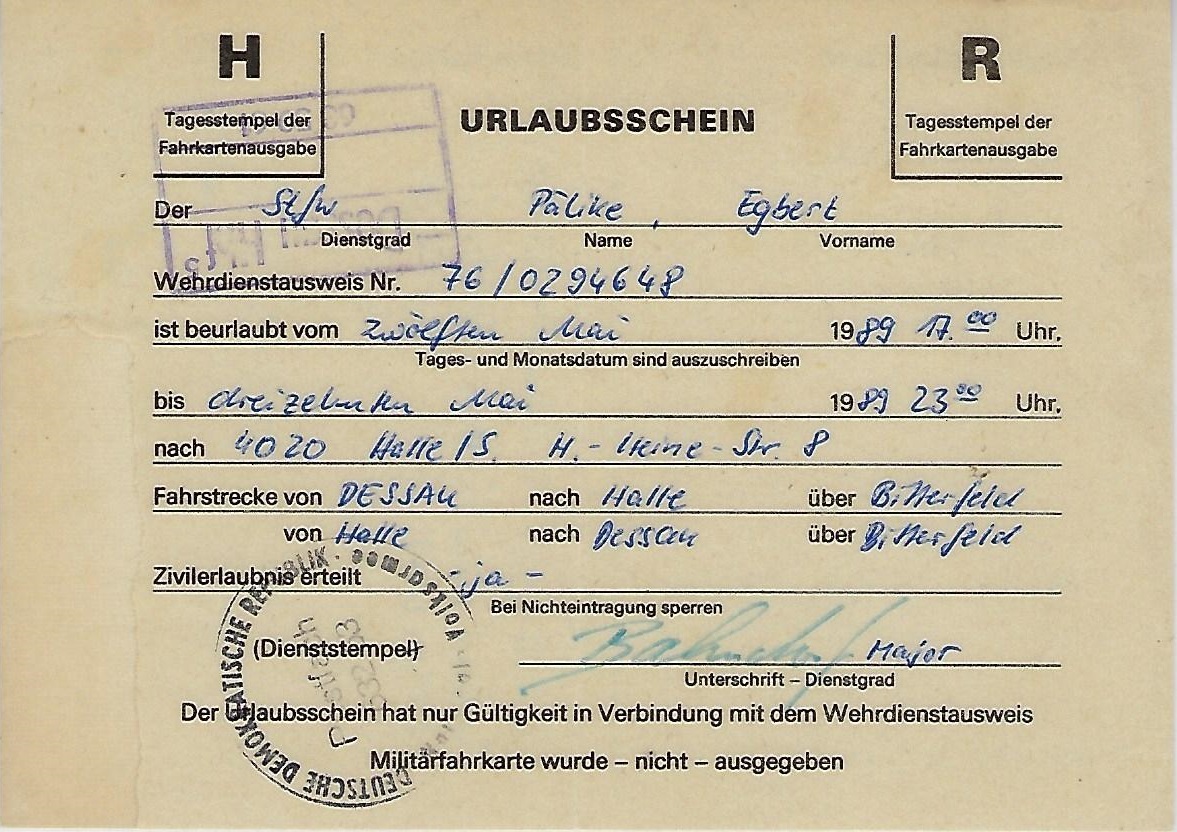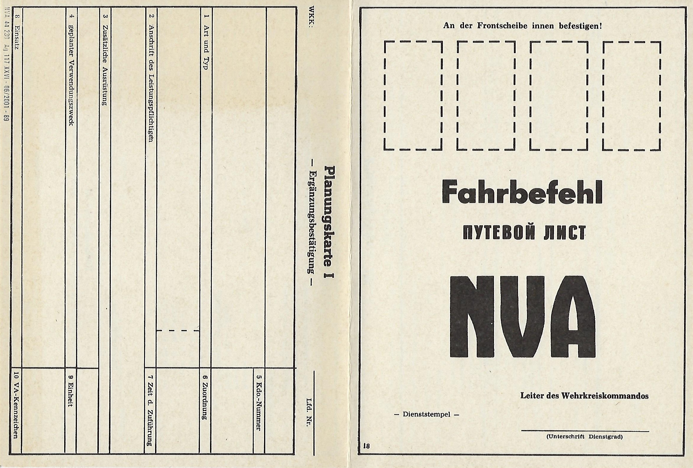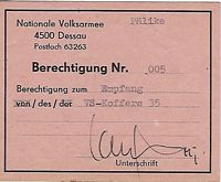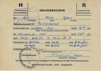 Berechtigungsschein der Deutschen Reichsbahn für Urlauberfahrkarten der NVA ; 1x NVA gestempelt und 1x Grenztruppen gestempelt |