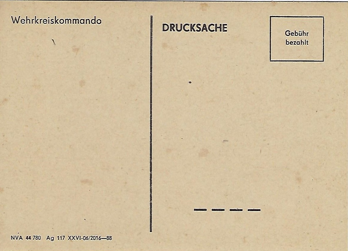 Tischkarte der Grenztruppen der DDR - in der Mitte zum falten (gefaltet Din A6) |
