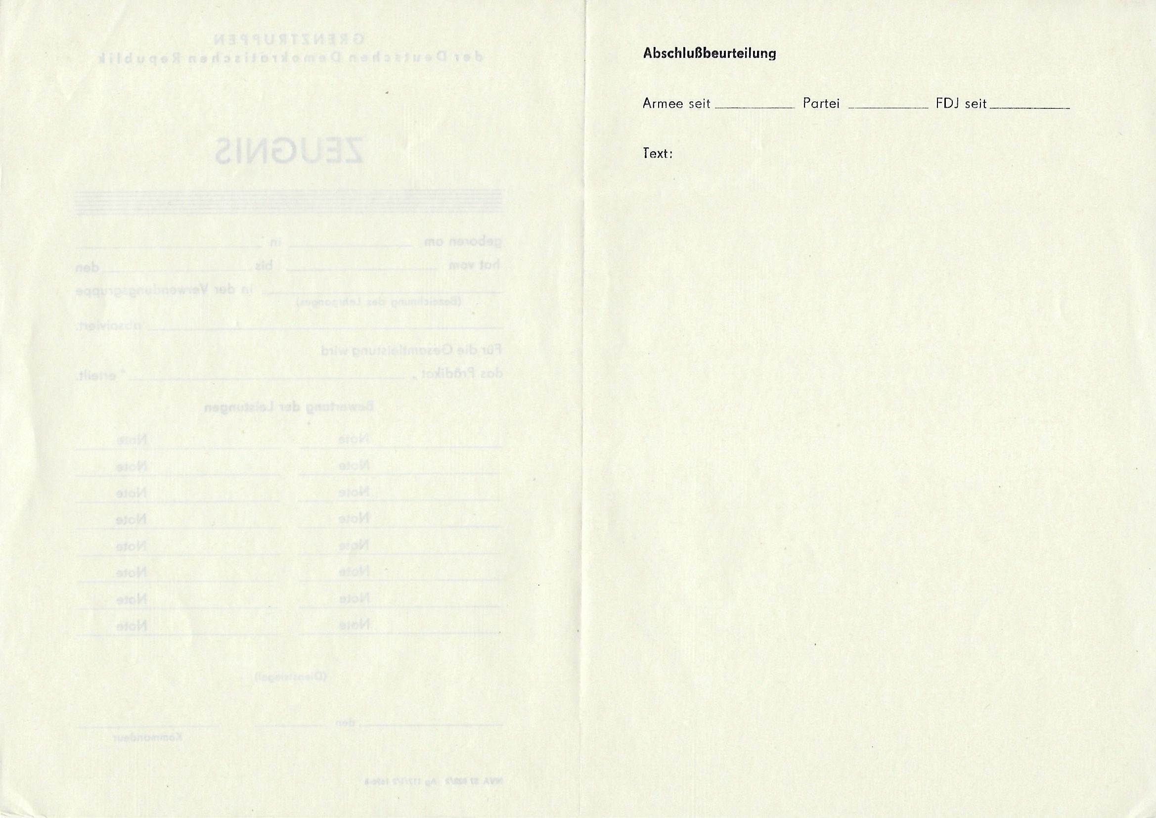 Urkunde - Nationale Volksarmee -In Anerkennung hoher militärsportlicher Leistungen...Militärsportabzeichen 1x blanco und 1 x ausgefüllt (kleiner Din A6) |