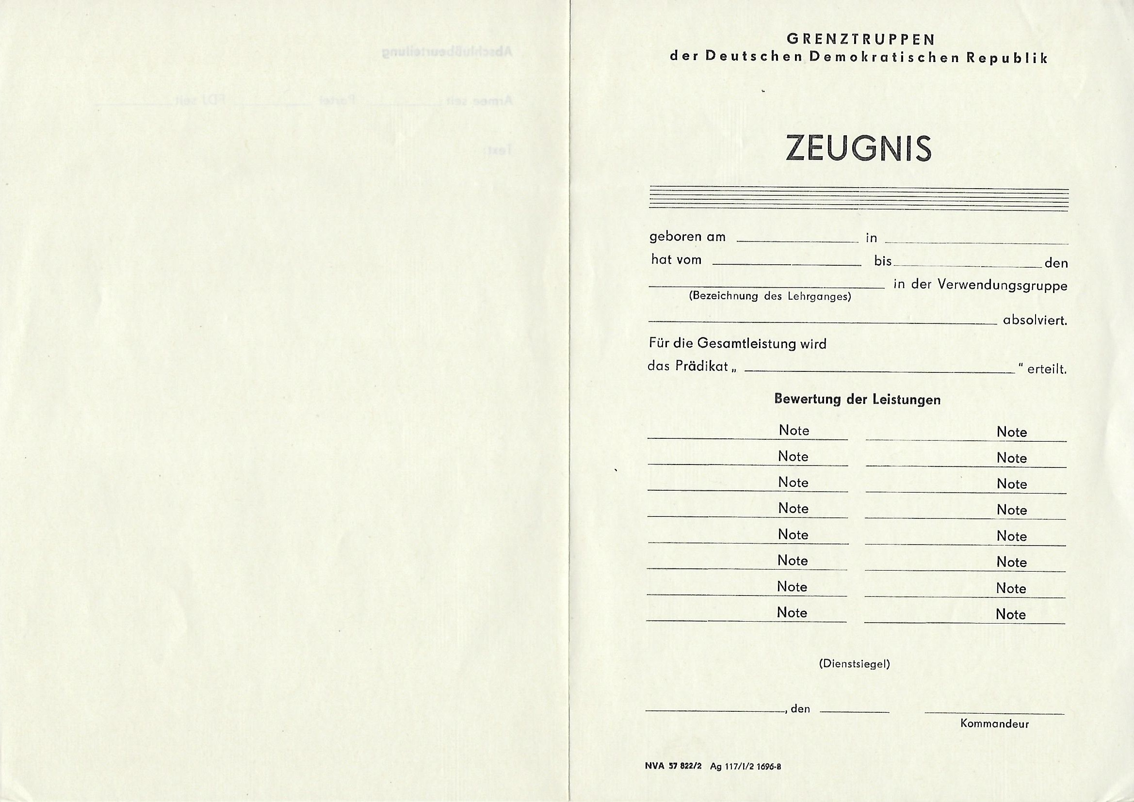 Urkunde - Grenztruppen der DDR - Verleihung des Titel .... Grenztruppen der DDR (kleiner Din A6) |