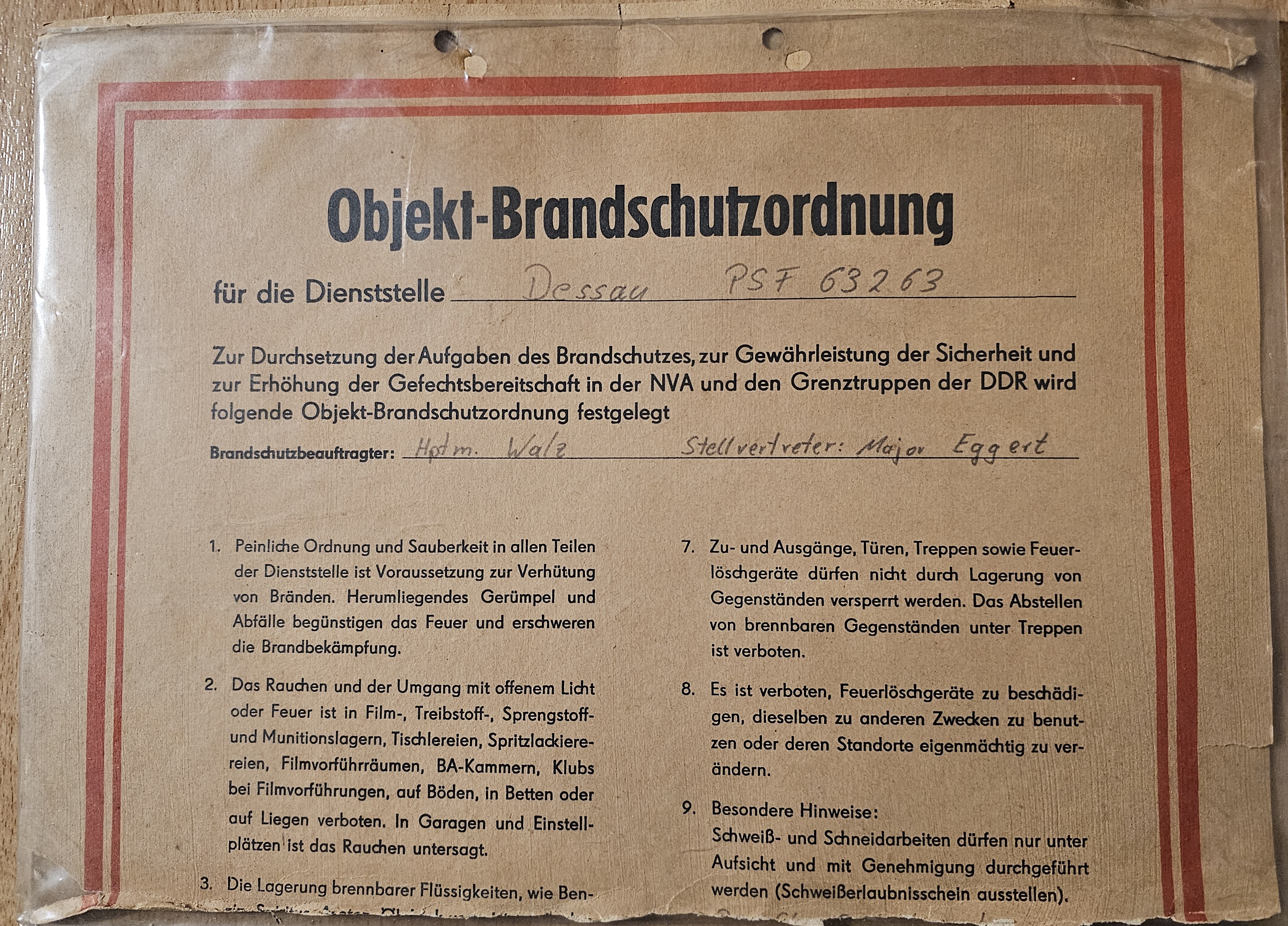Unfallmerkblatt für die Befördeung von Munition Klasse 1.1 (Bundeswehr - Wendezeit aus der Kaserne in Eggesin) |